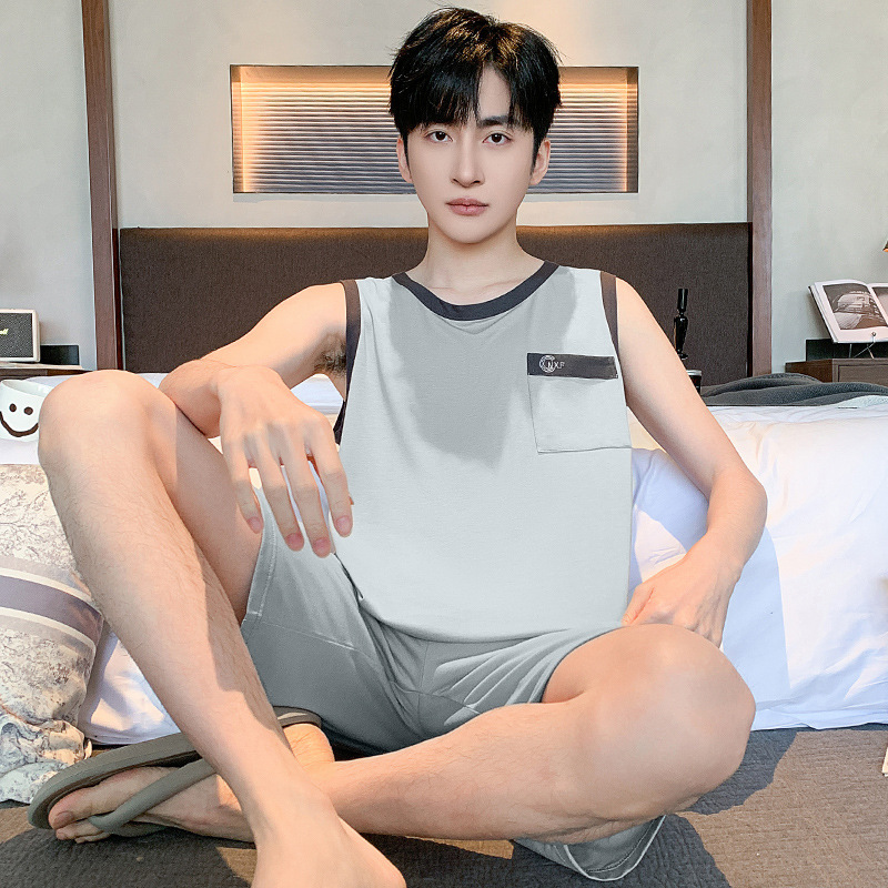 男士睡衣夏季莫代尔背心无袖薄款休闲家居服可外穿大码青少年套装