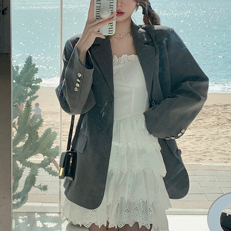 MENGXIANG 23/ss 芭蕾风蛋糕吊带连衣裙纯欲短裙气质少女春夏新品