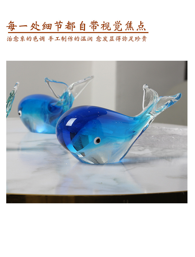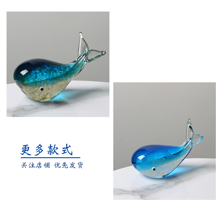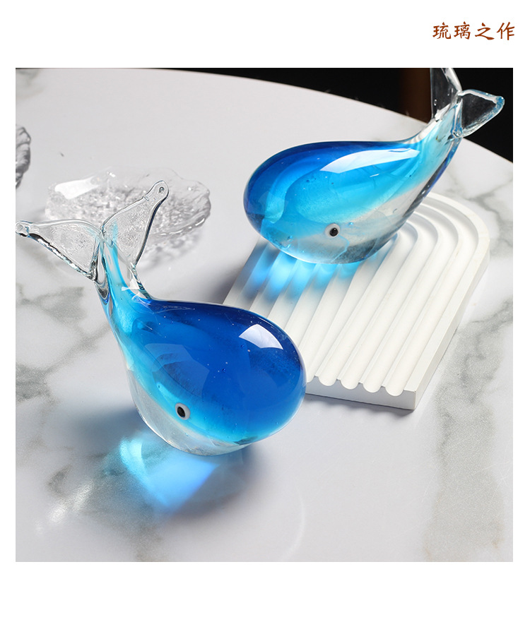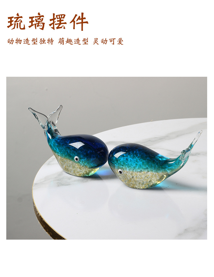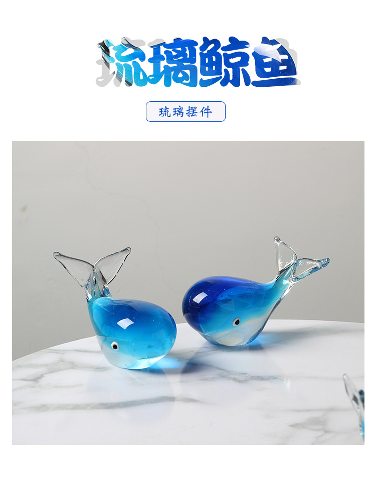 淄博琉璃夜光鲸鱼玻璃工艺品生日礼物海洋动物艺术品桌面装饰摆件