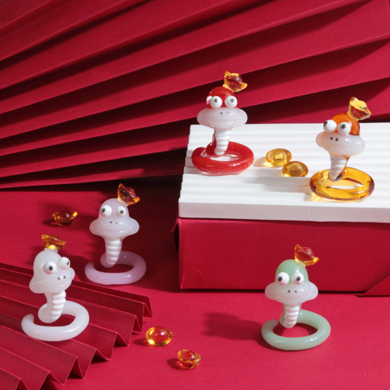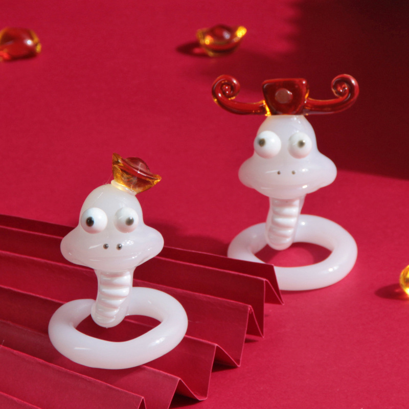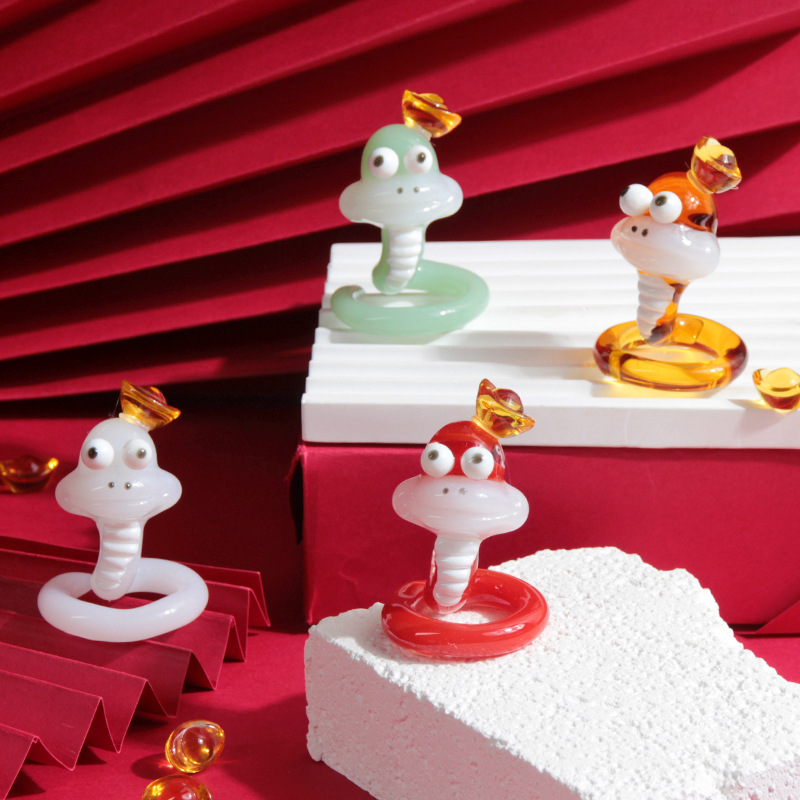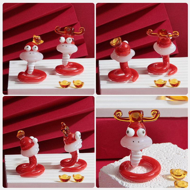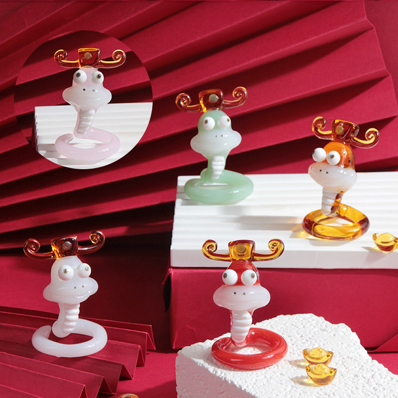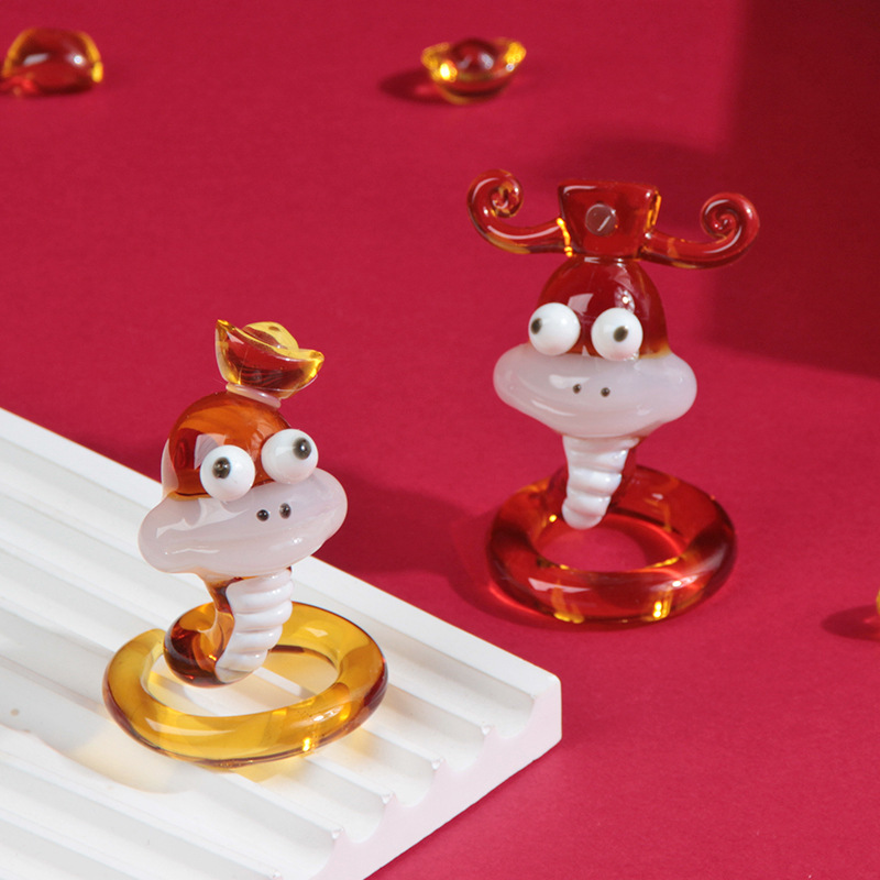 新年装饰摆件小礼物本命年2025蛇年吉祥物公仔淄博琉璃工艺品玻璃