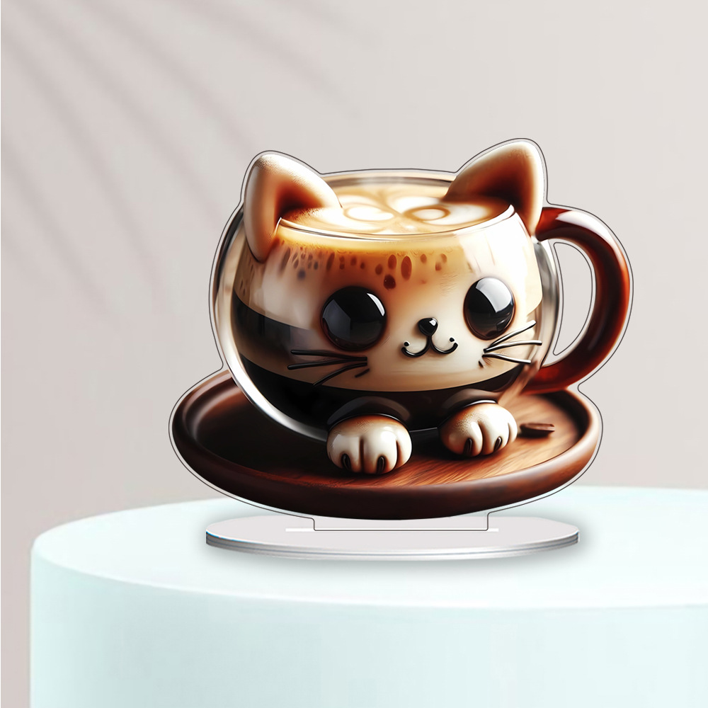 跨境热销新款猫咖啡杯亚克力摆件客厅桌面书桌柜台装饰节日礼物