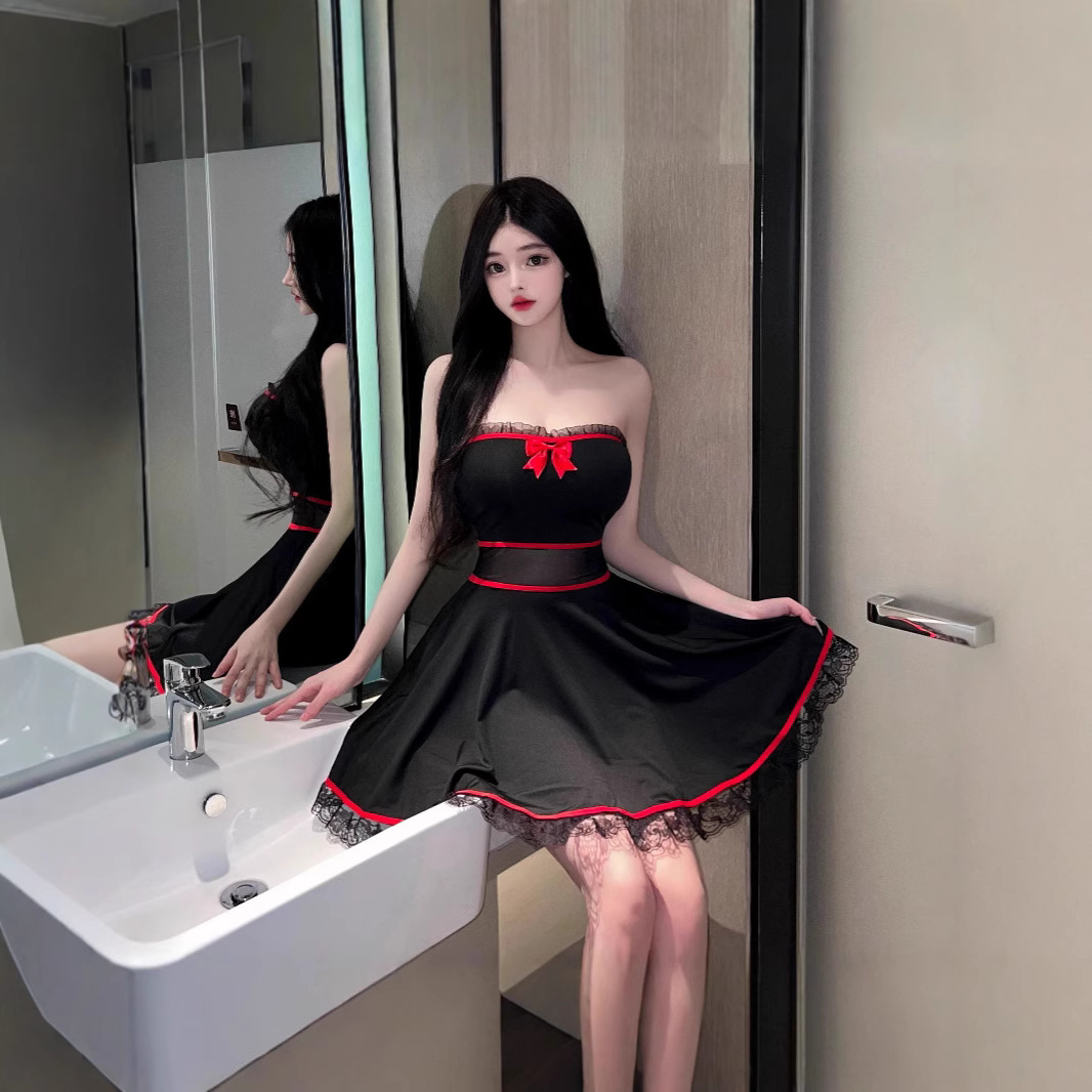 蝴蝶结蕾丝花边抹胸性感包臀裙设计感夜店辣妹时尚大摆收腰连衣裙
