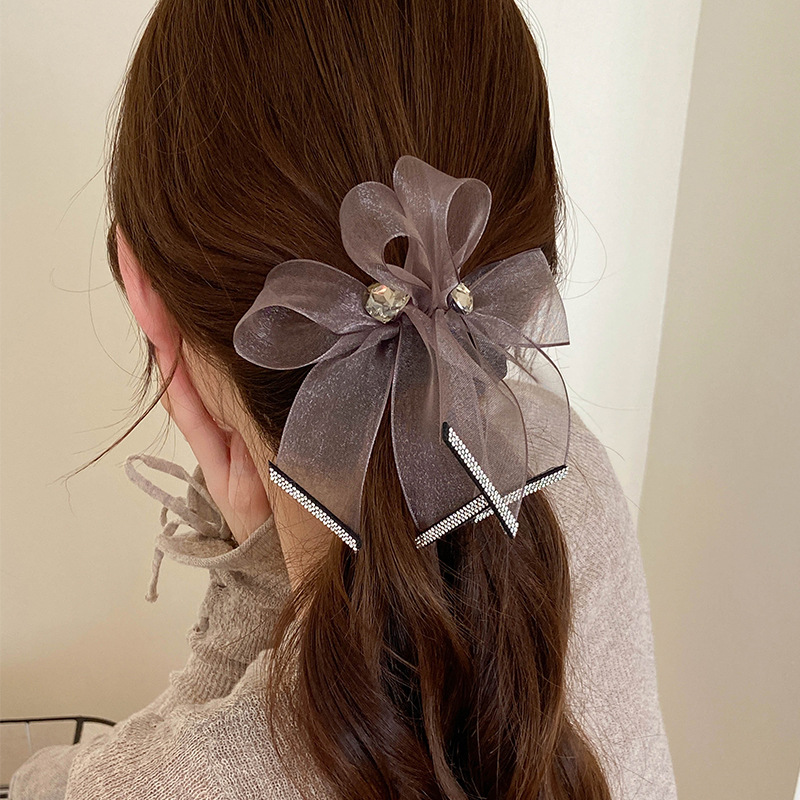原创高级感欧根纱蝴蝶结K9水晶水钻发圈发绳马尾扎头绳橡皮筋饰品