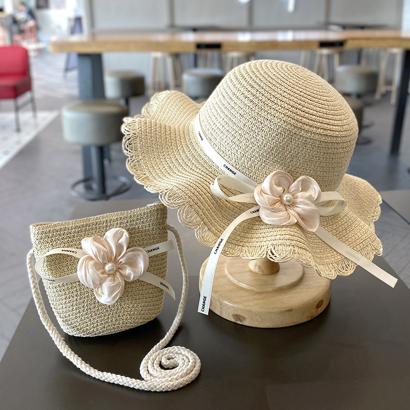 夏季女童帽子夏天公主沙滩太阳遮阳防晒小女孩花朵女宝渔夫草帽夏