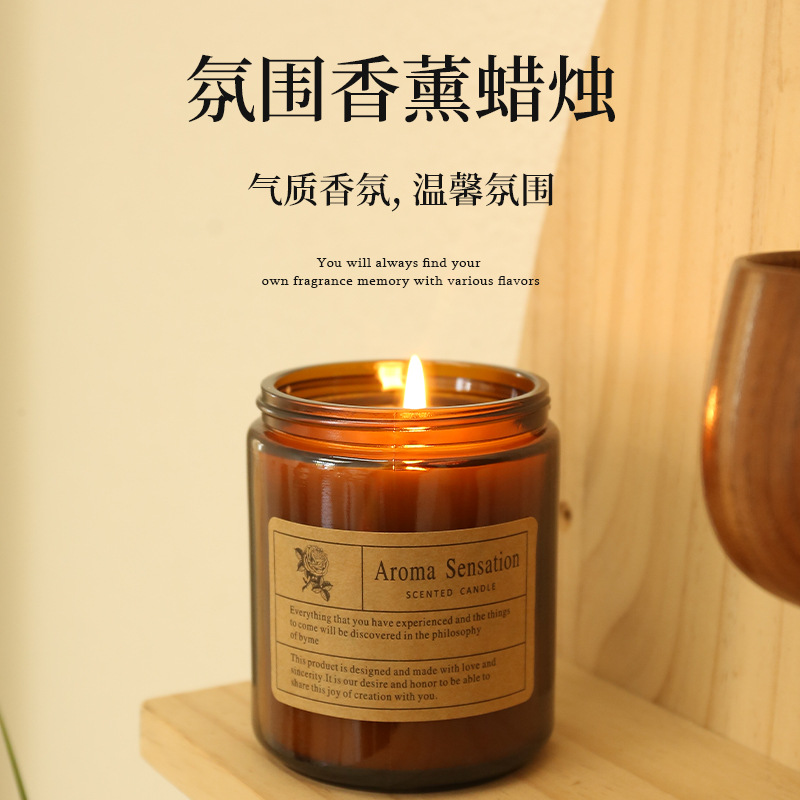 大号茶色玻璃杯香薰蜡烛创意氛围无烟手工伴手礼礼物