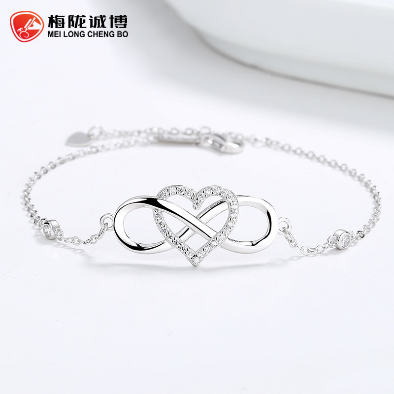 爱心形数字8字交叉手链女925纯银无限根号8闺蜜手饰品