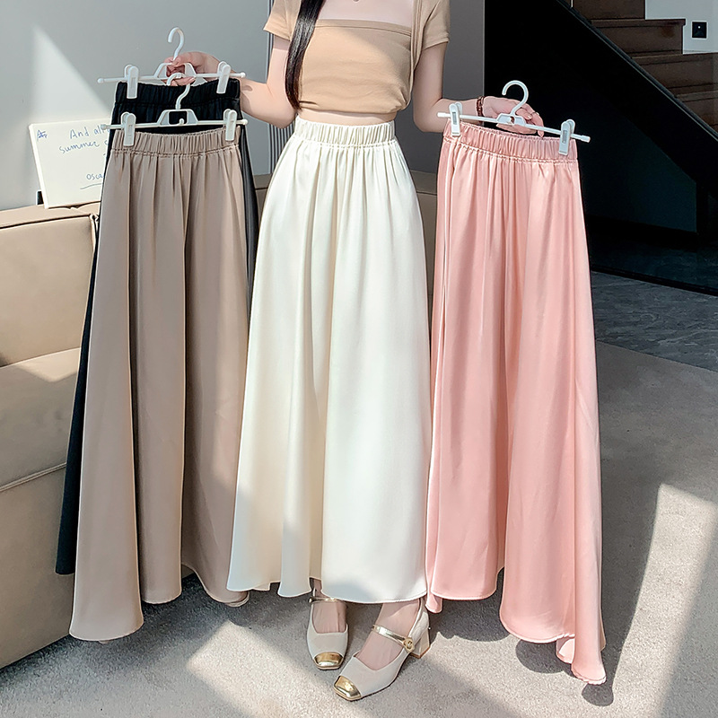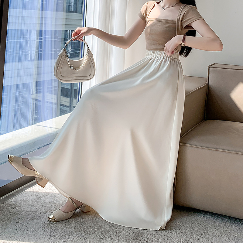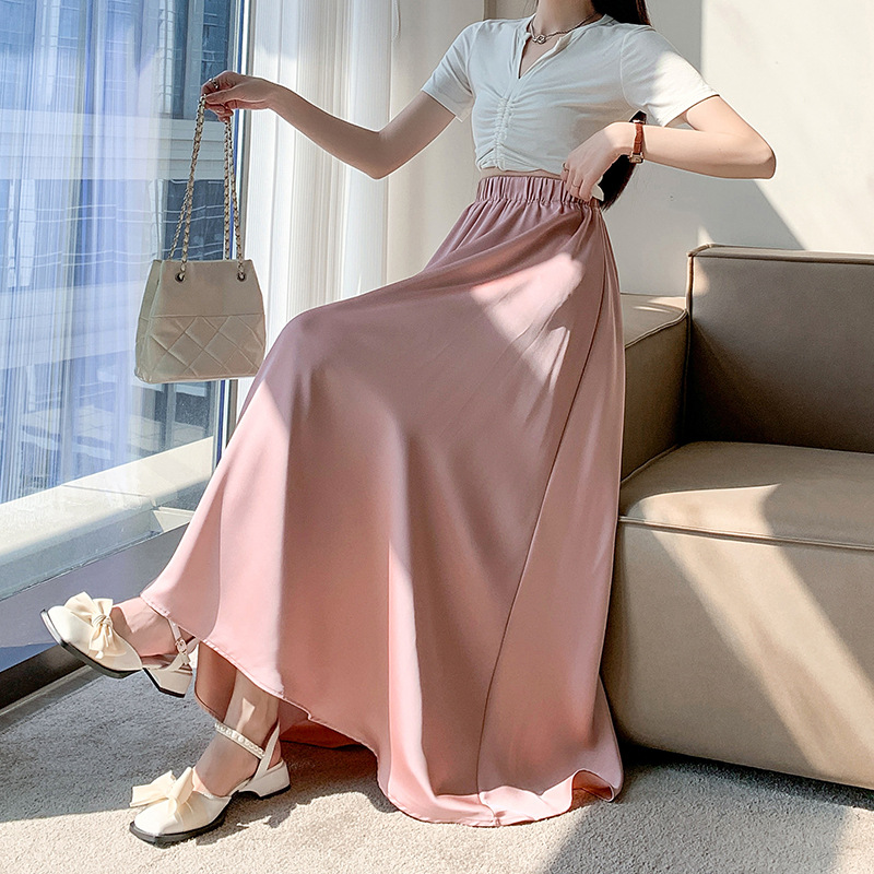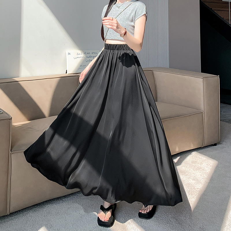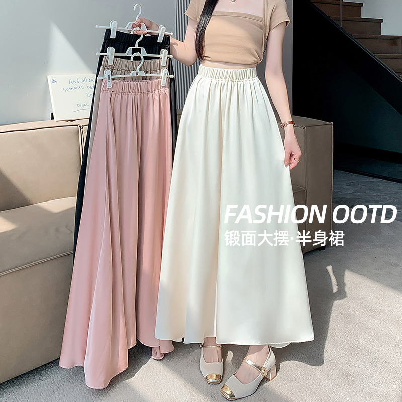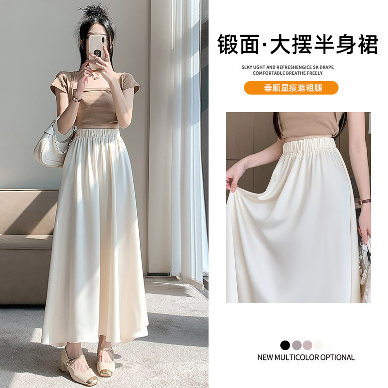 高腰显瘦醋酸缎面半身裙子春夏新款中长a字小个子高级女长裙