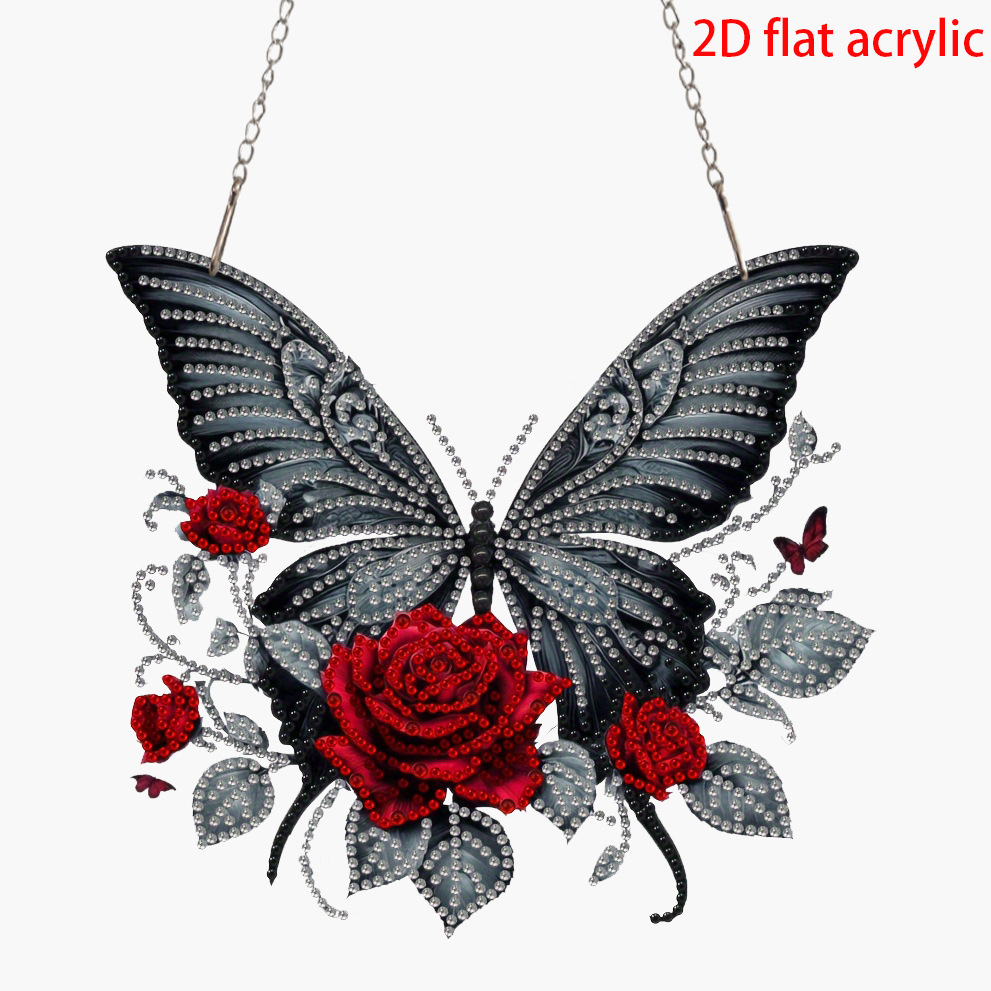 跨境钻石画蝴蝶与玫瑰亚克力水晶钻挂件手工diy家居客厅阳台装饰
