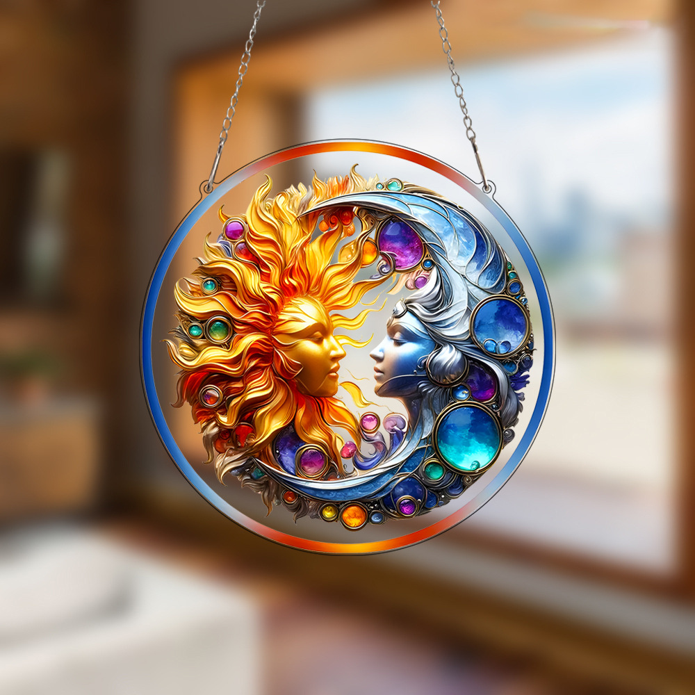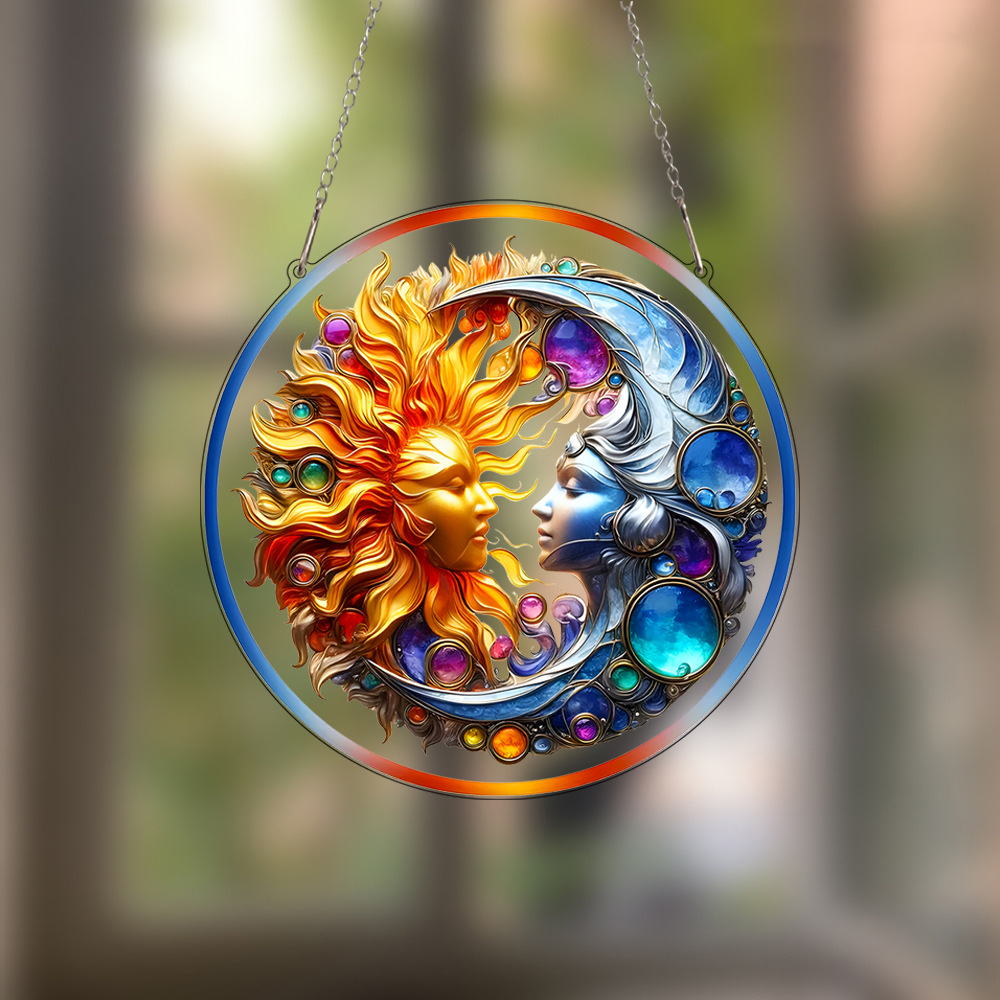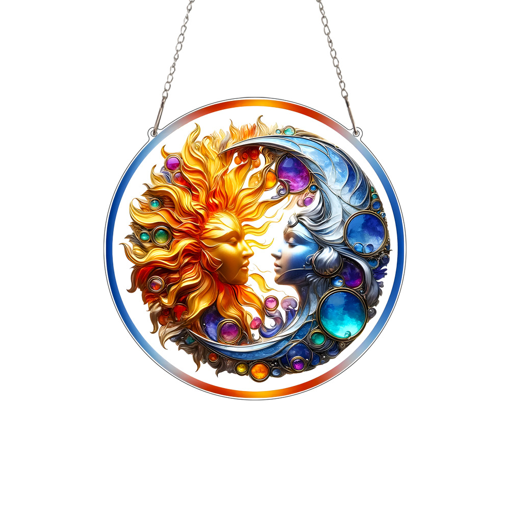 跨境卡通金太阳与灰月亮亚克力窗户门挂艺术节日场景装饰挂件挂饰