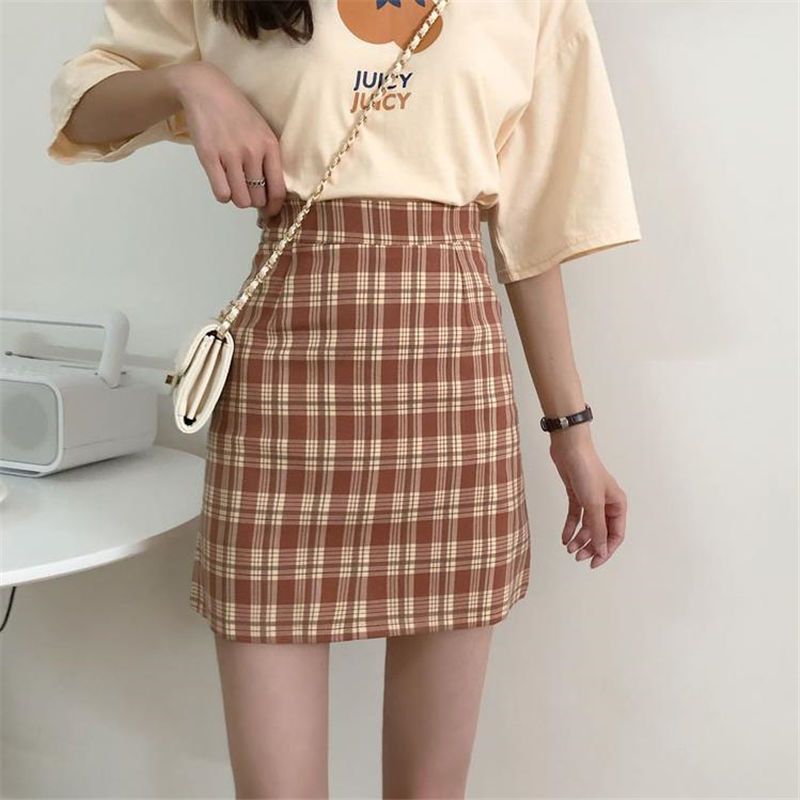 复古a字裙格子包臀裙防走光春夏显瘦学生一步短裙ins半身裙潮