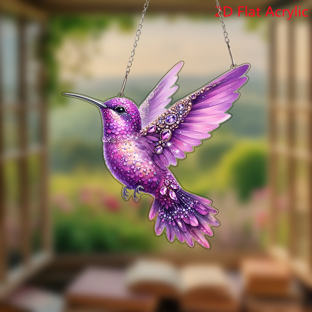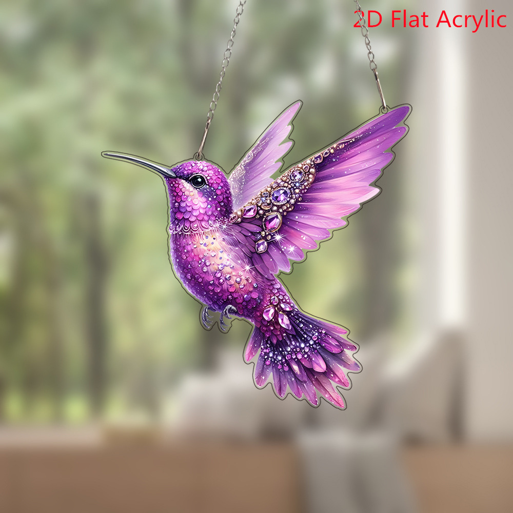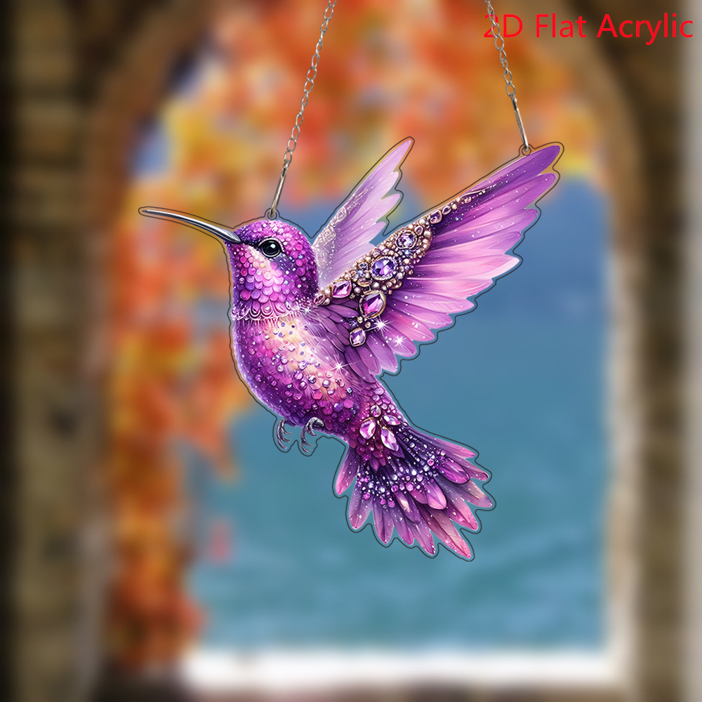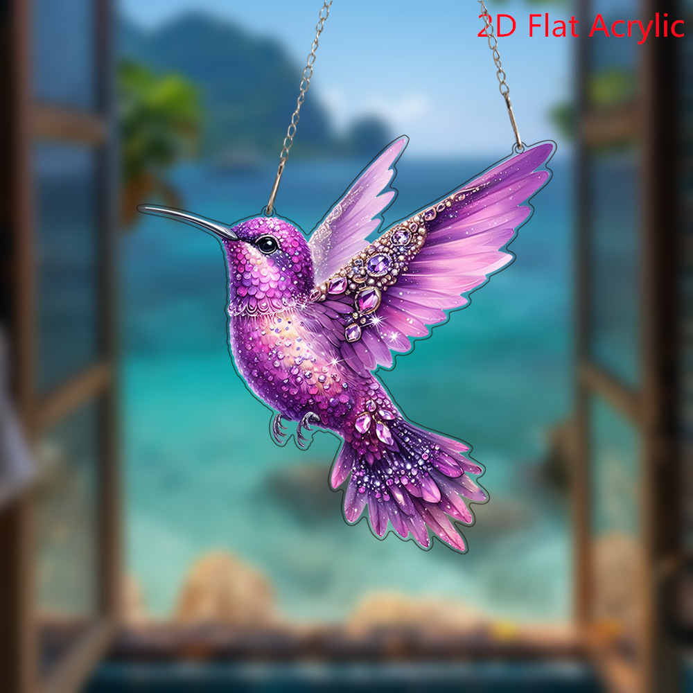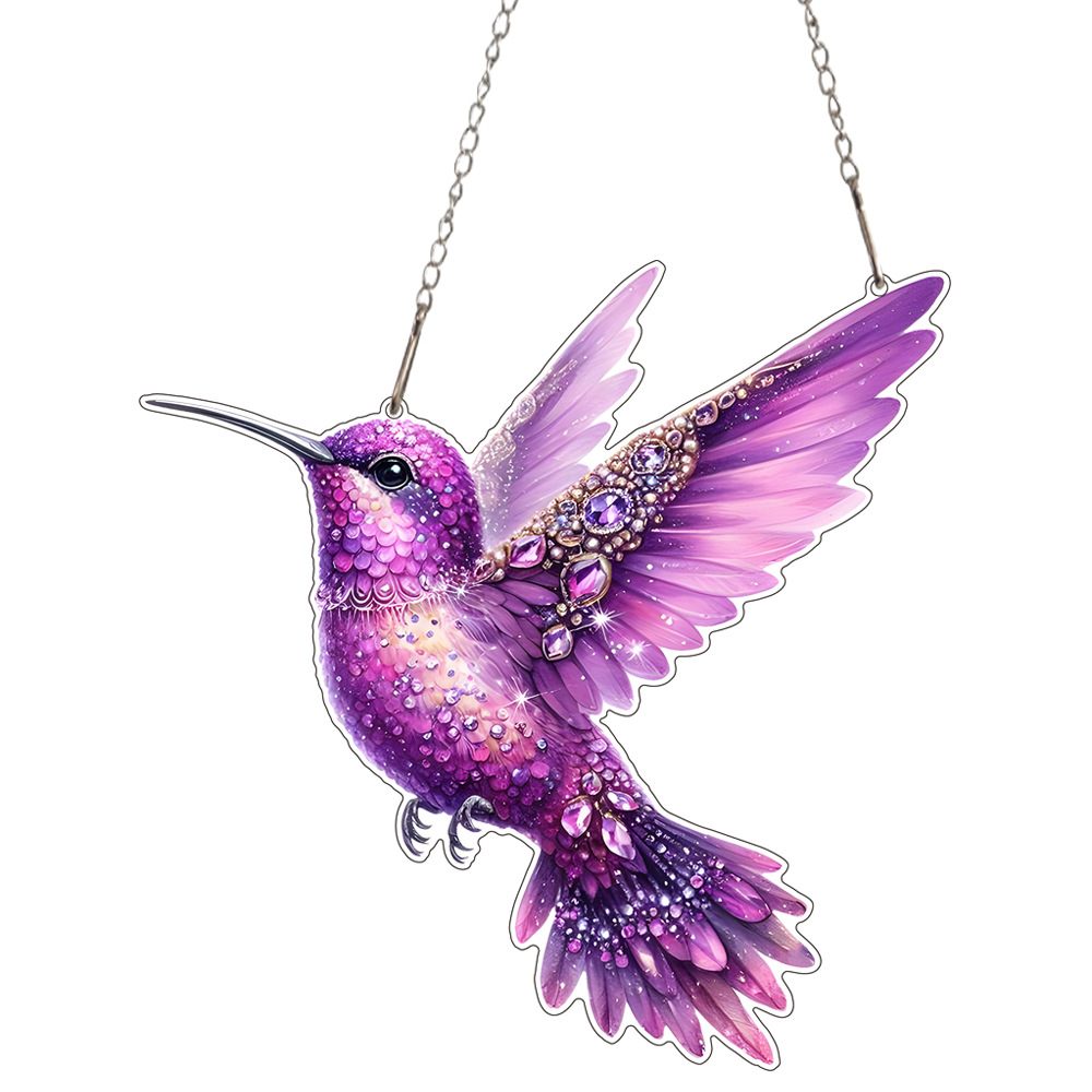 跨境卡通可爱彩色钻石小鸟亚克力门挂艺术节日场景装饰挂件挂饰