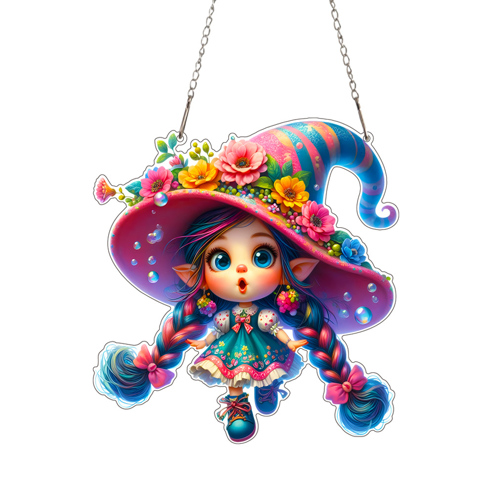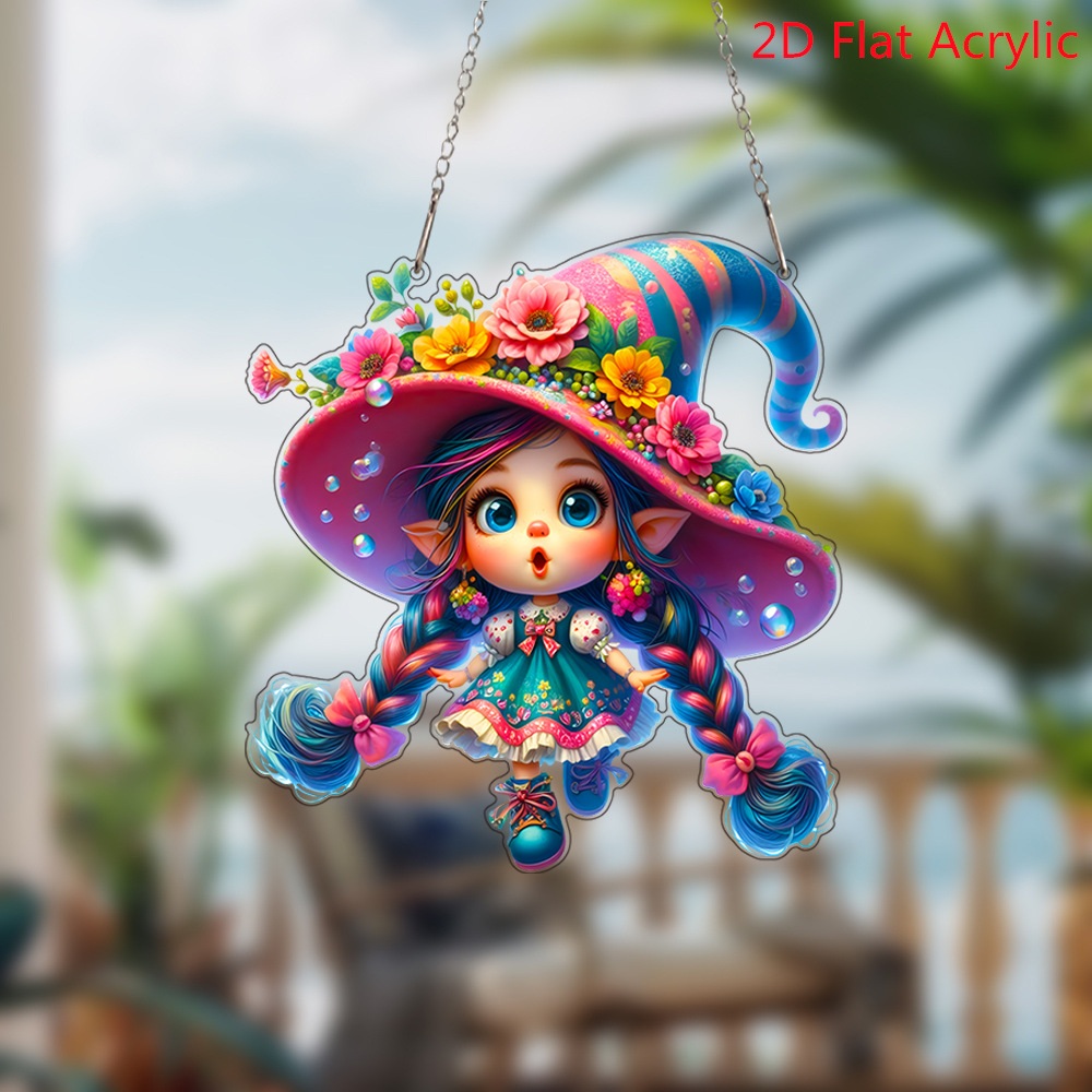 跨境卡通花帽小女孩亚克力潮玩窗户门挂艺术节日场景装饰挂件挂饰