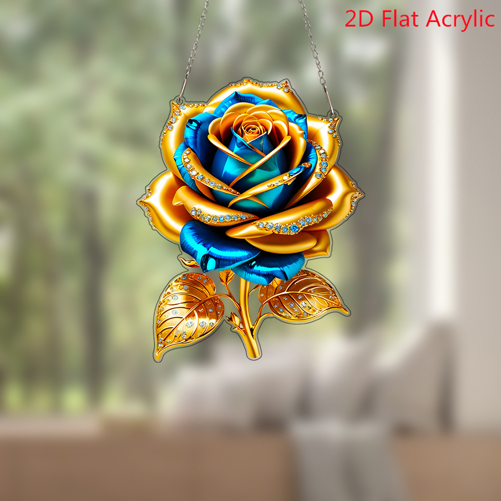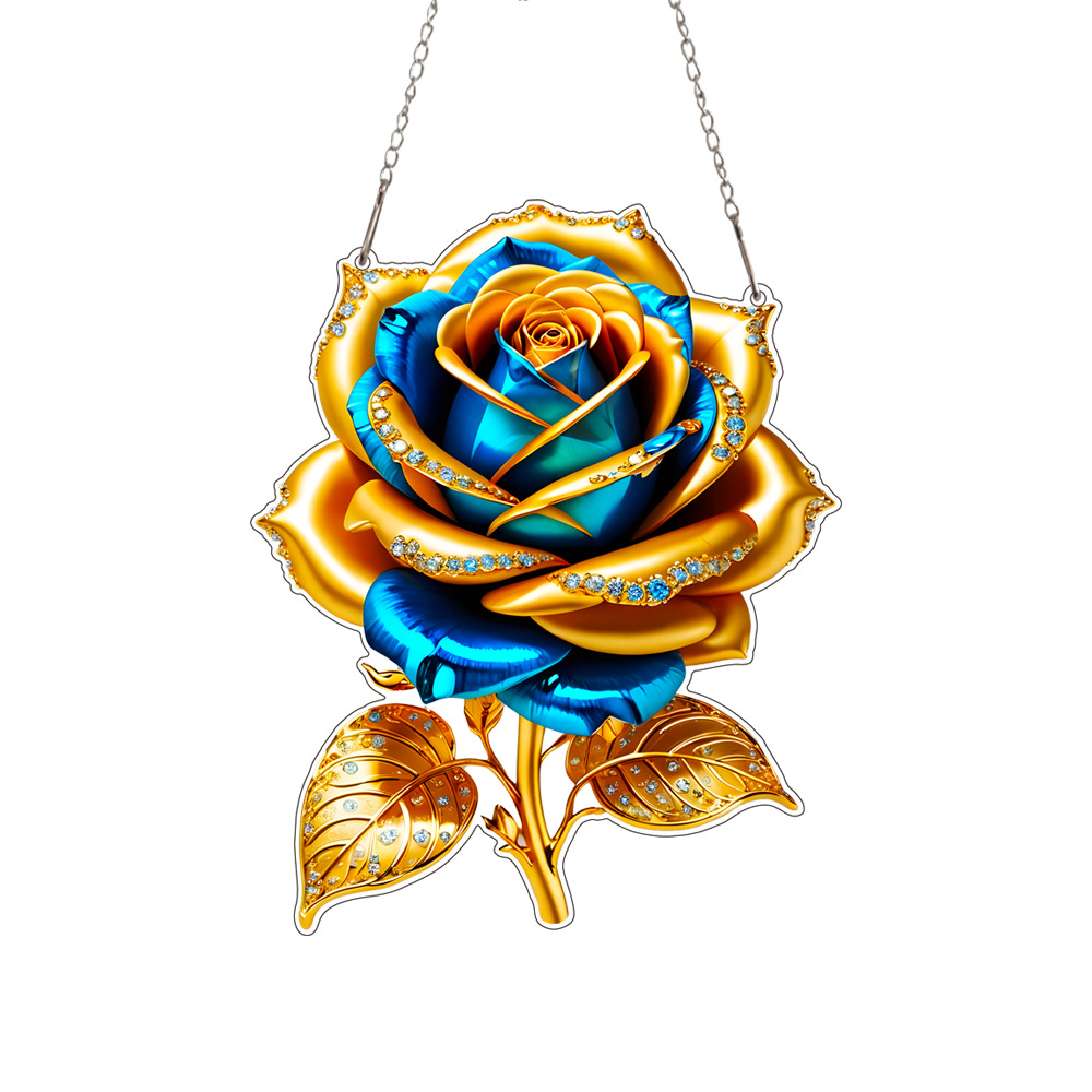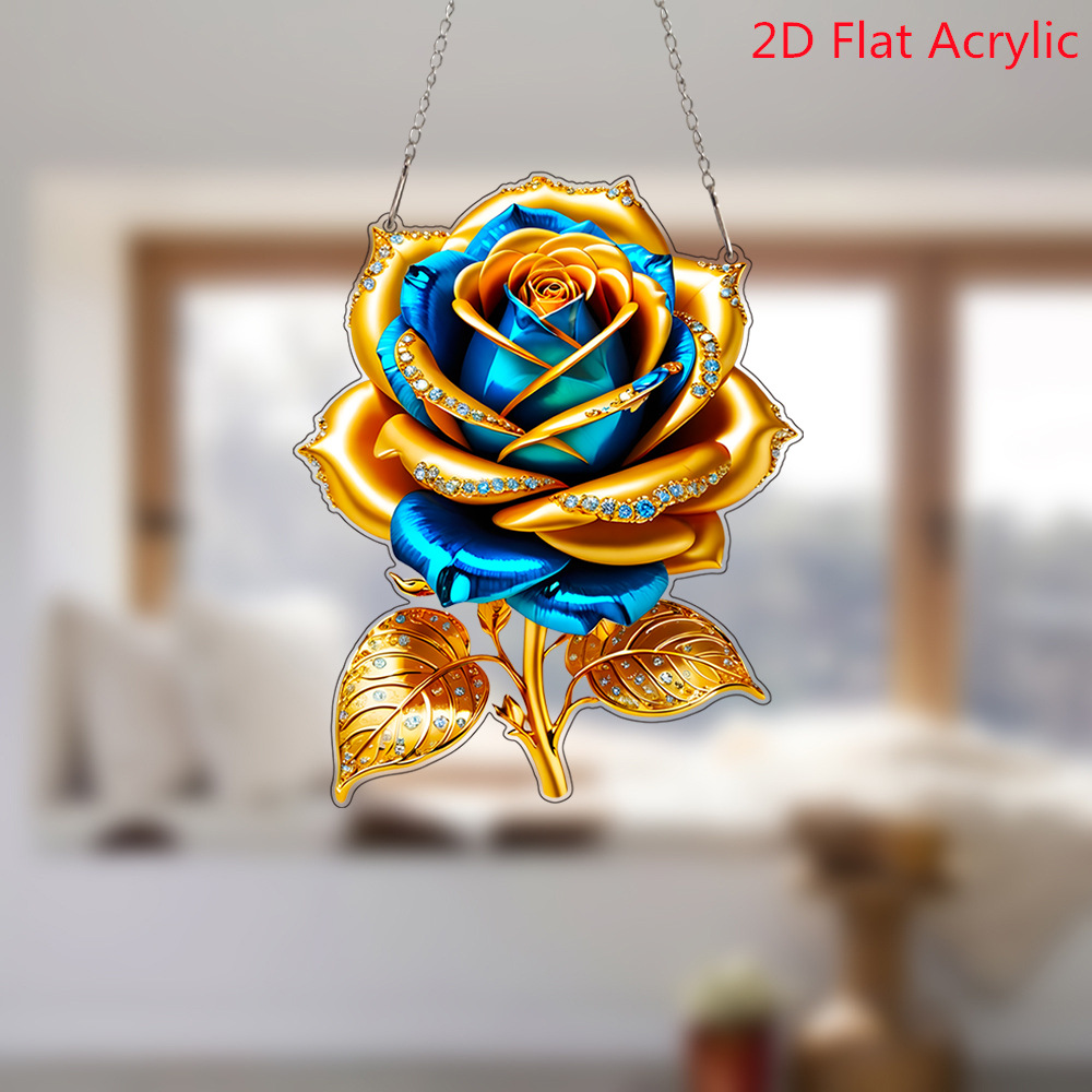 跨境黄金玫瑰花亚克力窗户门挂艺术节日场景装饰挂件挂饰情人节