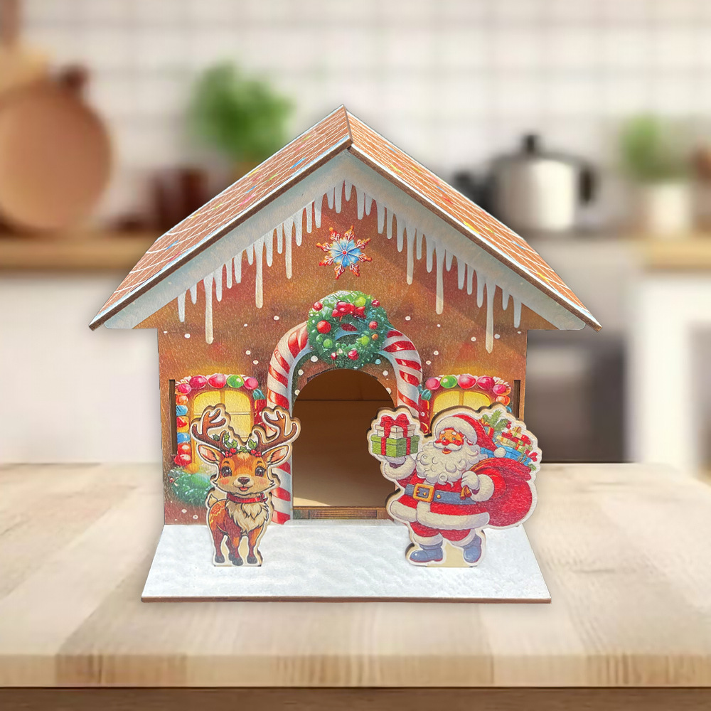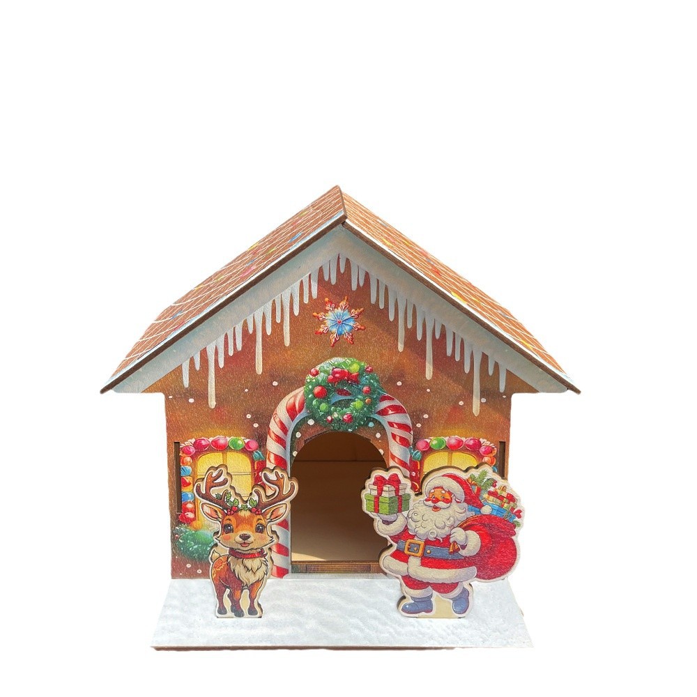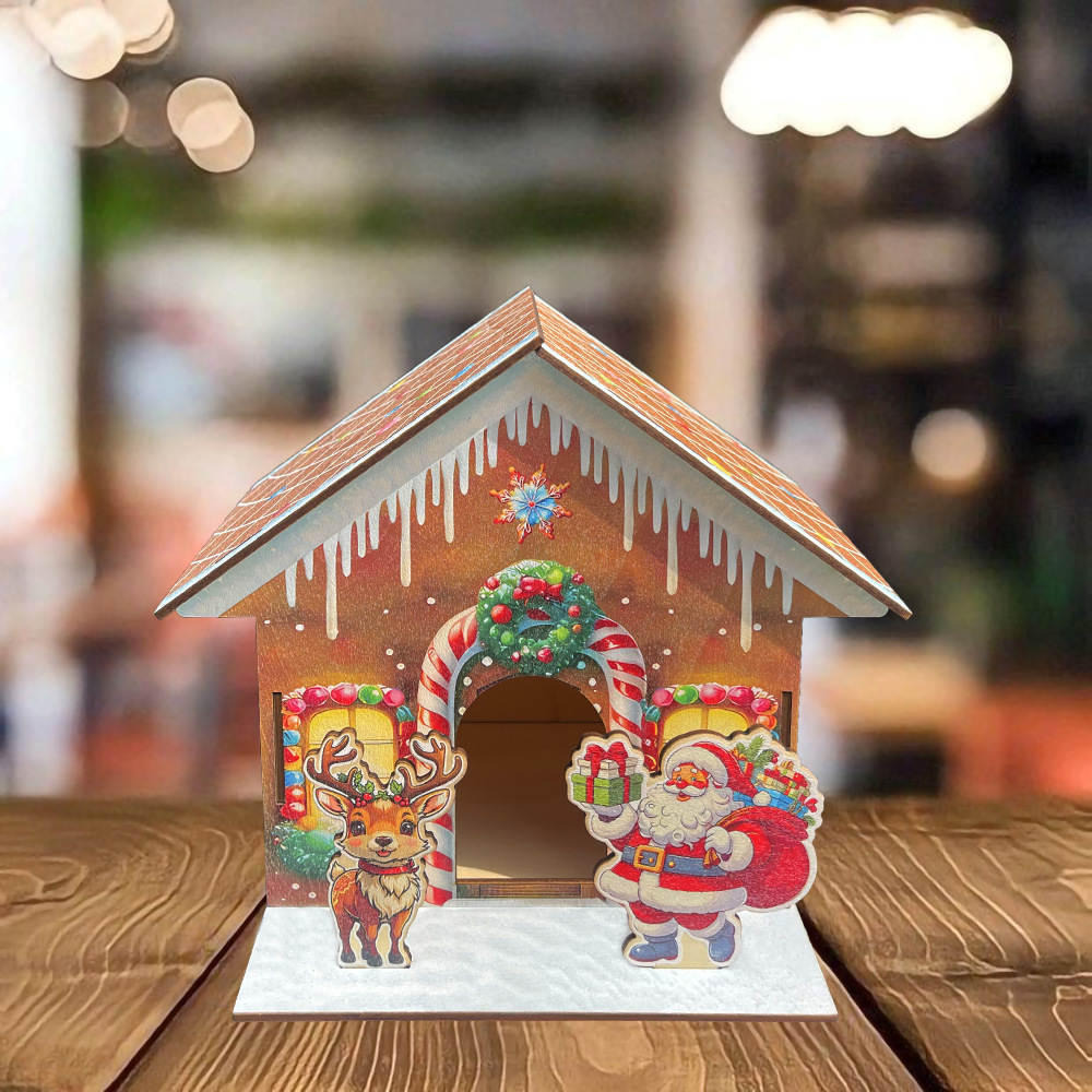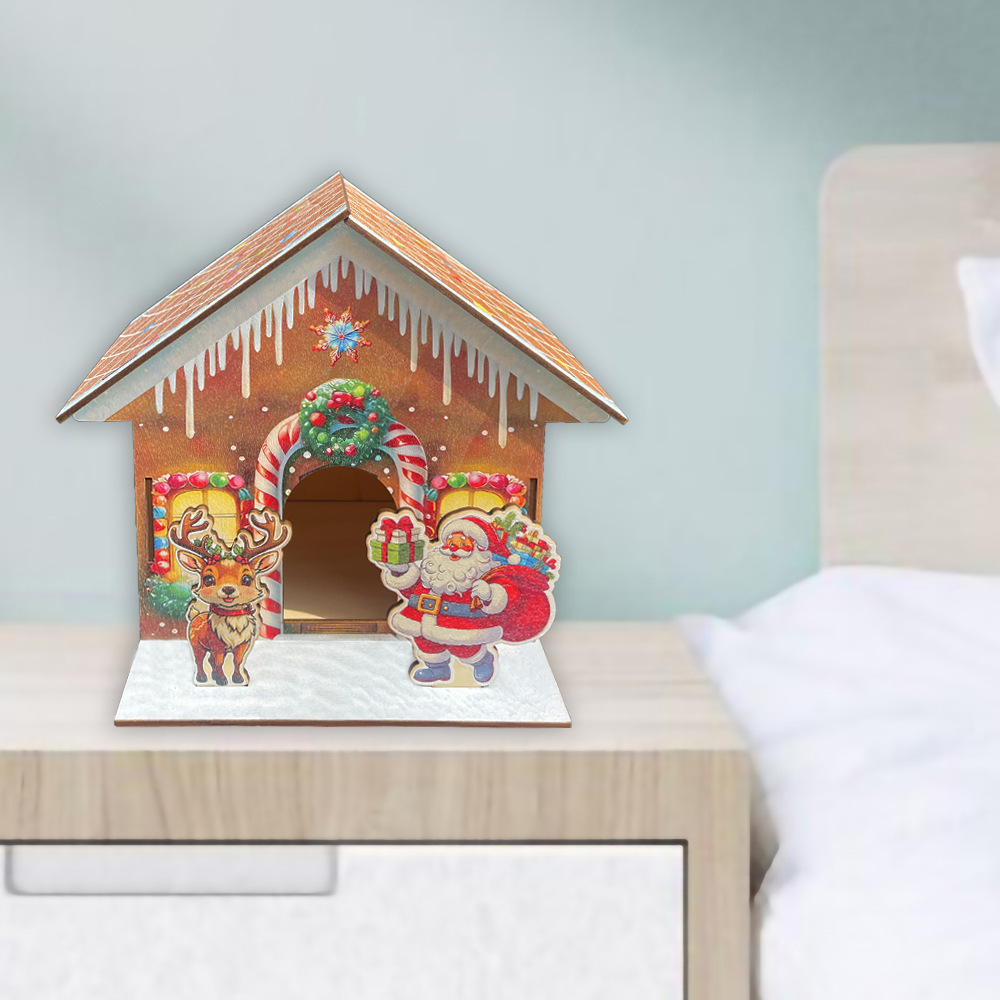 跨境热销卡通木板圣诞屋创意家居客厅圣诞节桌面家居摆件送礼物