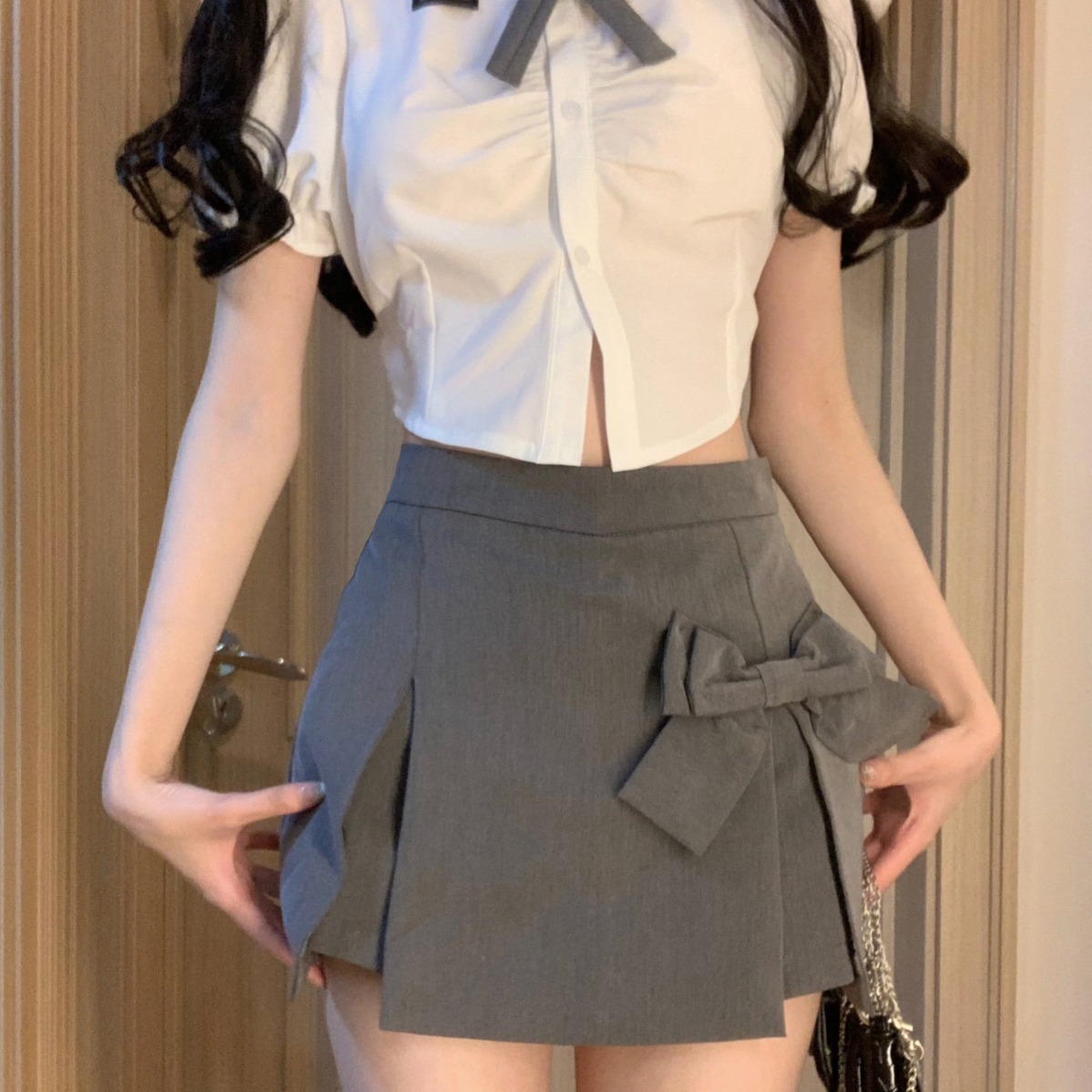 减龄蝴蝶结半身裙女生夏季设计感西装高腰短裙子a字裤裙独特别致
