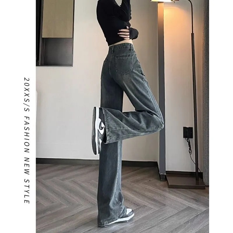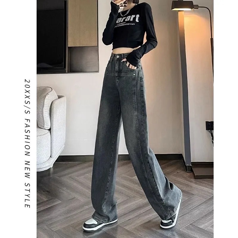 2025春高腰阔腿牛仔裤女秋冬季新款宽松小个子复古窄版直筒裤子女