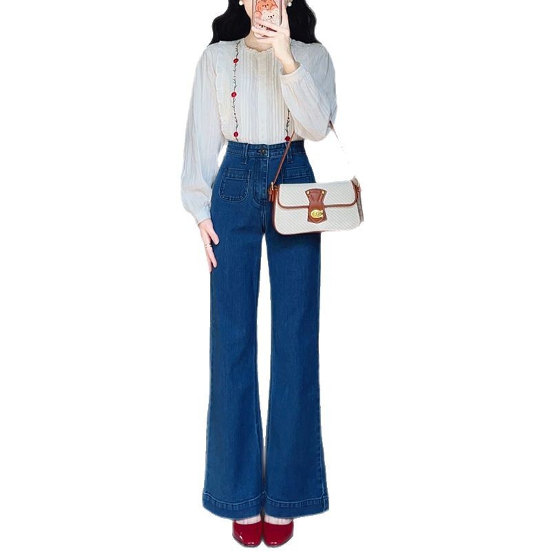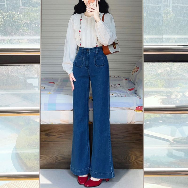 复古蓝微喇牛仔裤女2025年春秋季新款弹力紧身显瘦百搭做旧喇叭裤