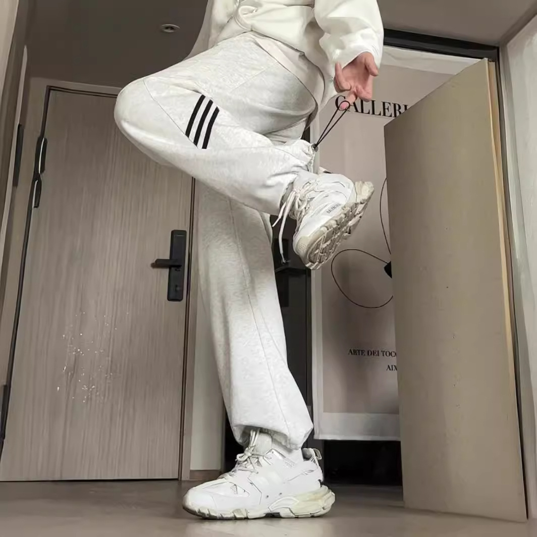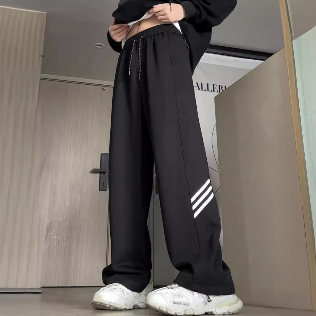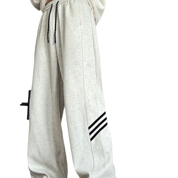 宽松直筒束脚灰情侣卫裤女抽绳条纹休闲运动裤青少年流行潮流