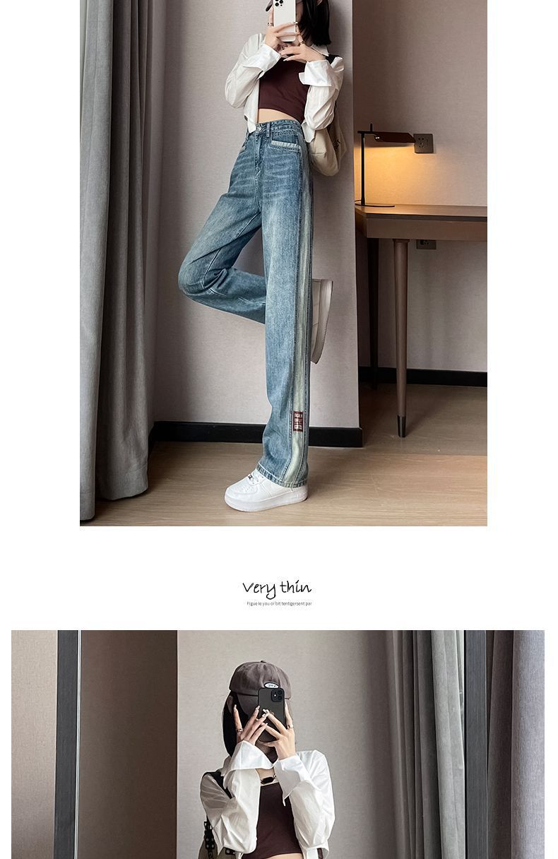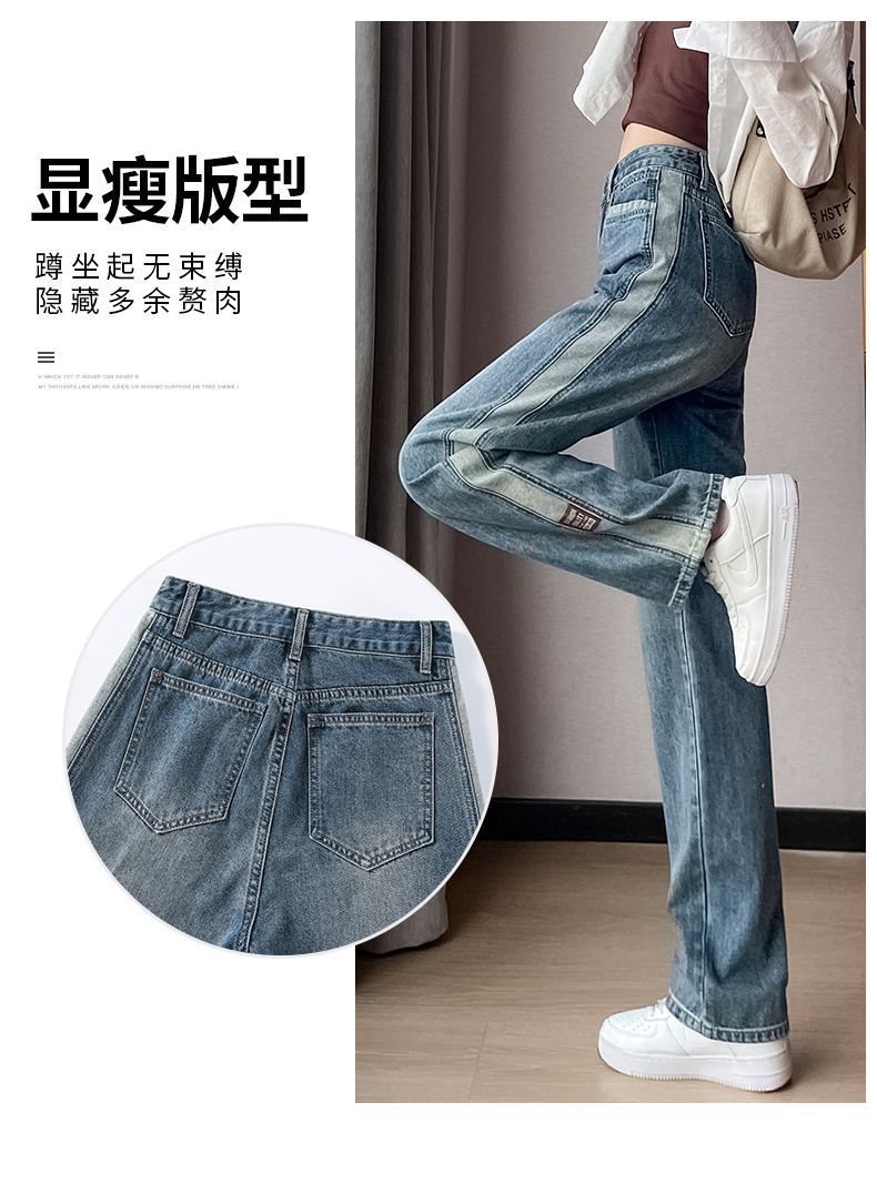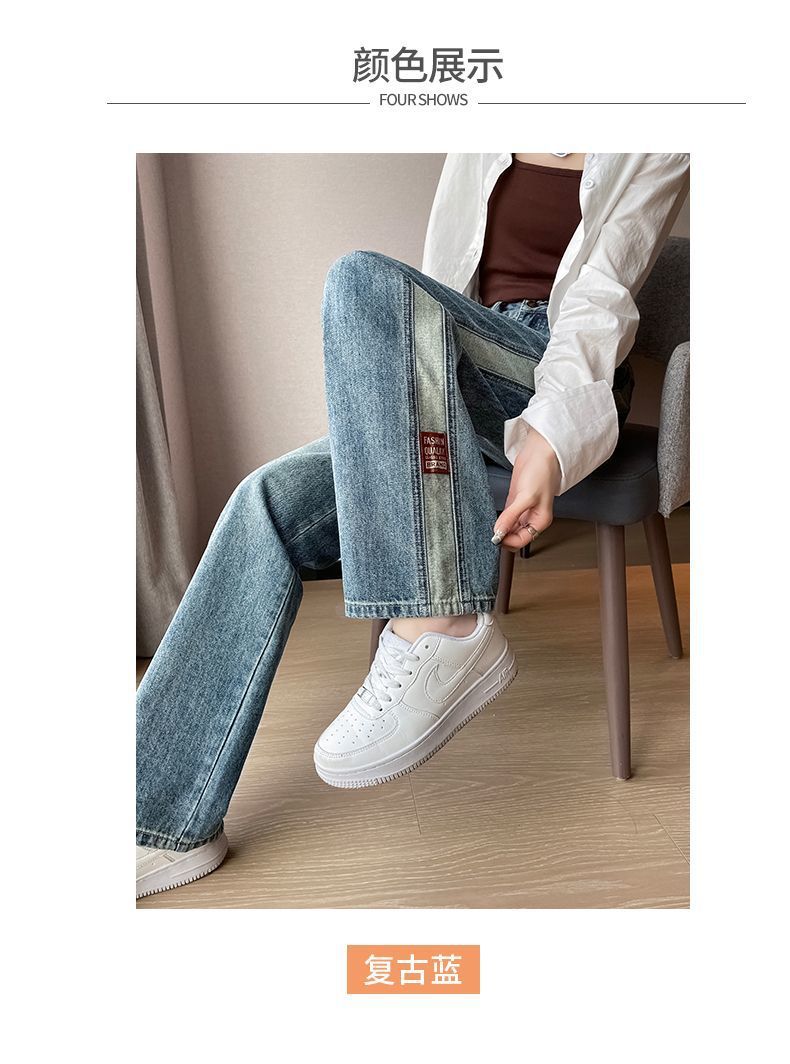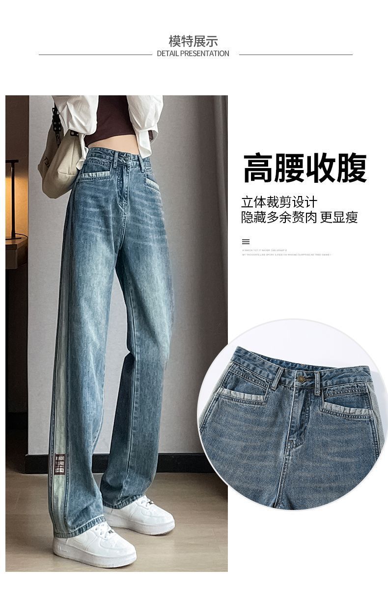 拖地阔腿牛仔裤女2025年新款春秋季高腰显瘦小个子拼接宽松直筒裤