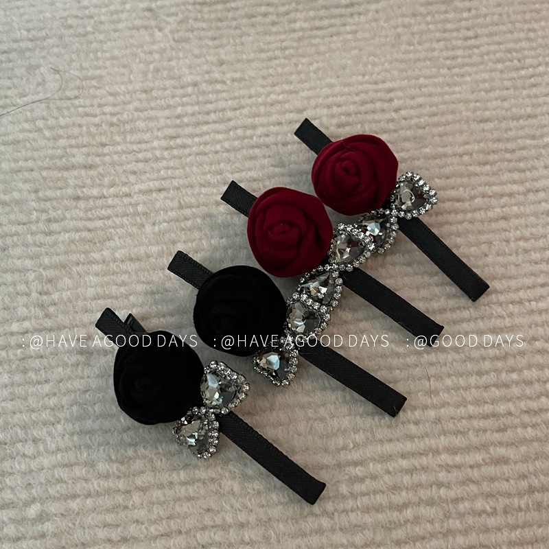 甜美丝绒玫瑰蝴蝶结发夹气质个性边夹刘海夹发饰头饰高级感小众女