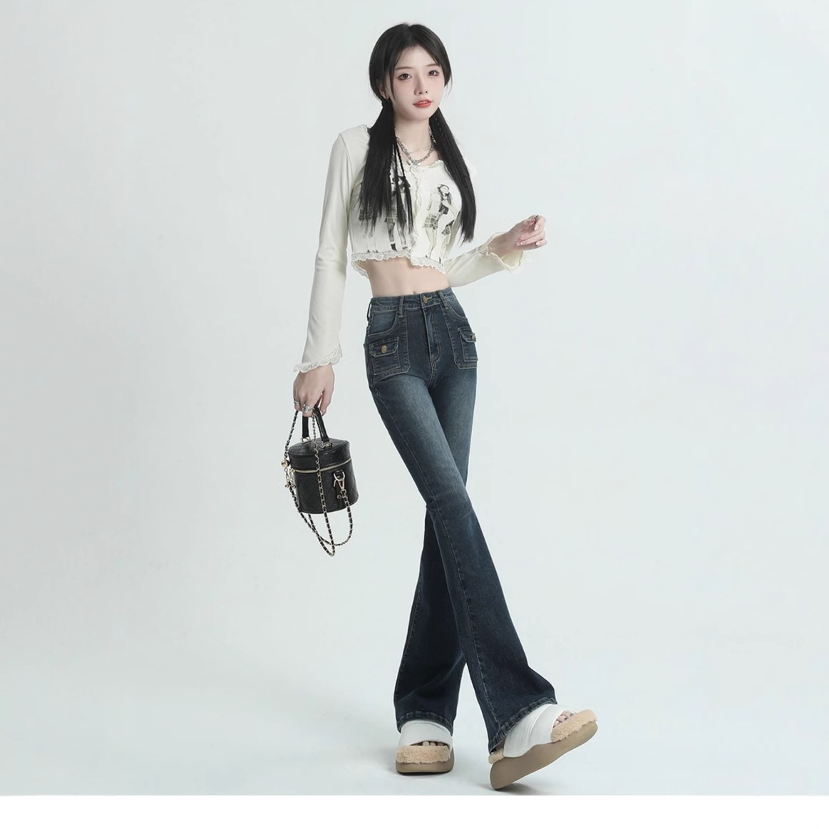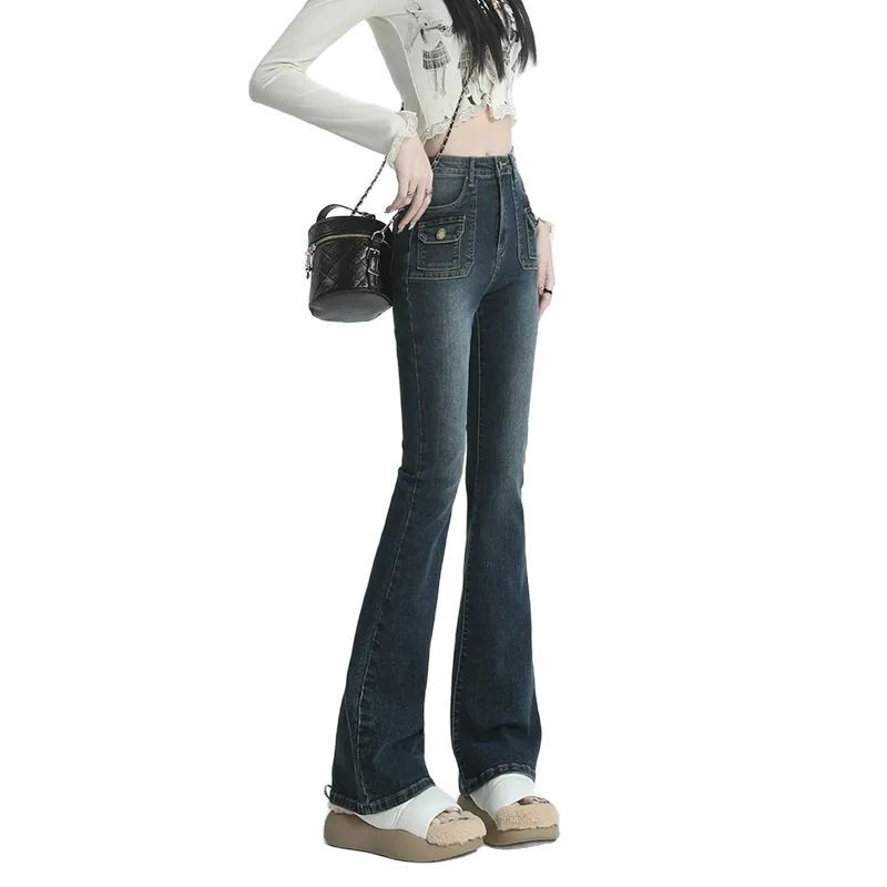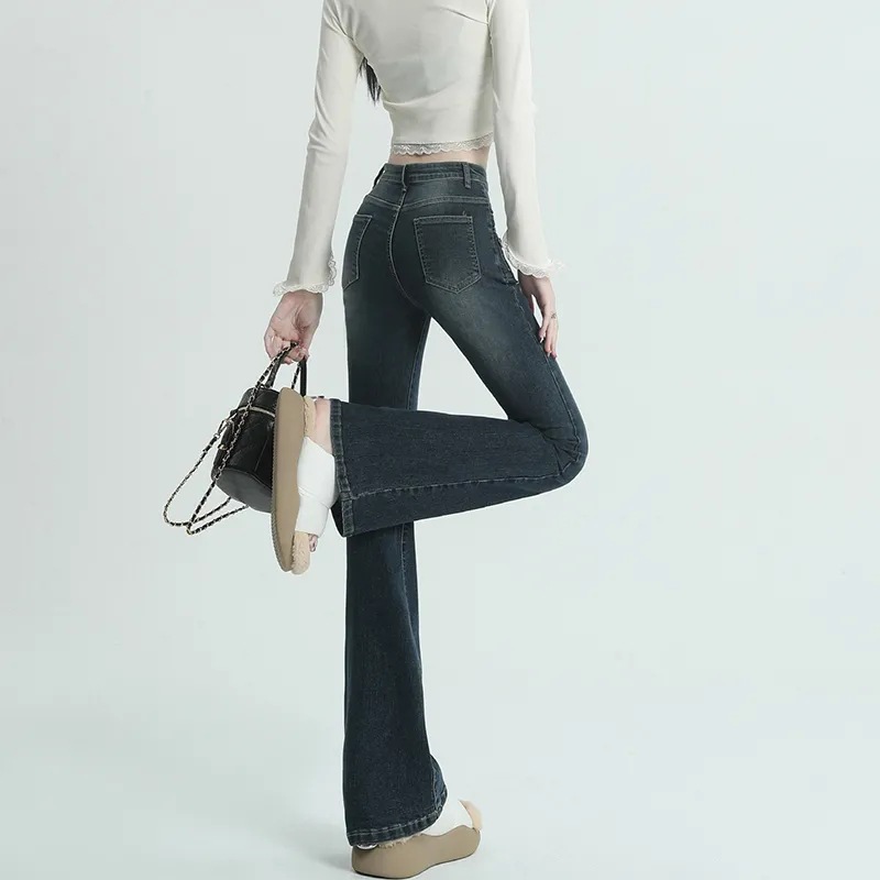 复古蓝微喇叭牛仔裤女秋季新款高腰显瘦美式设计感辣妹拖地马蹄裤