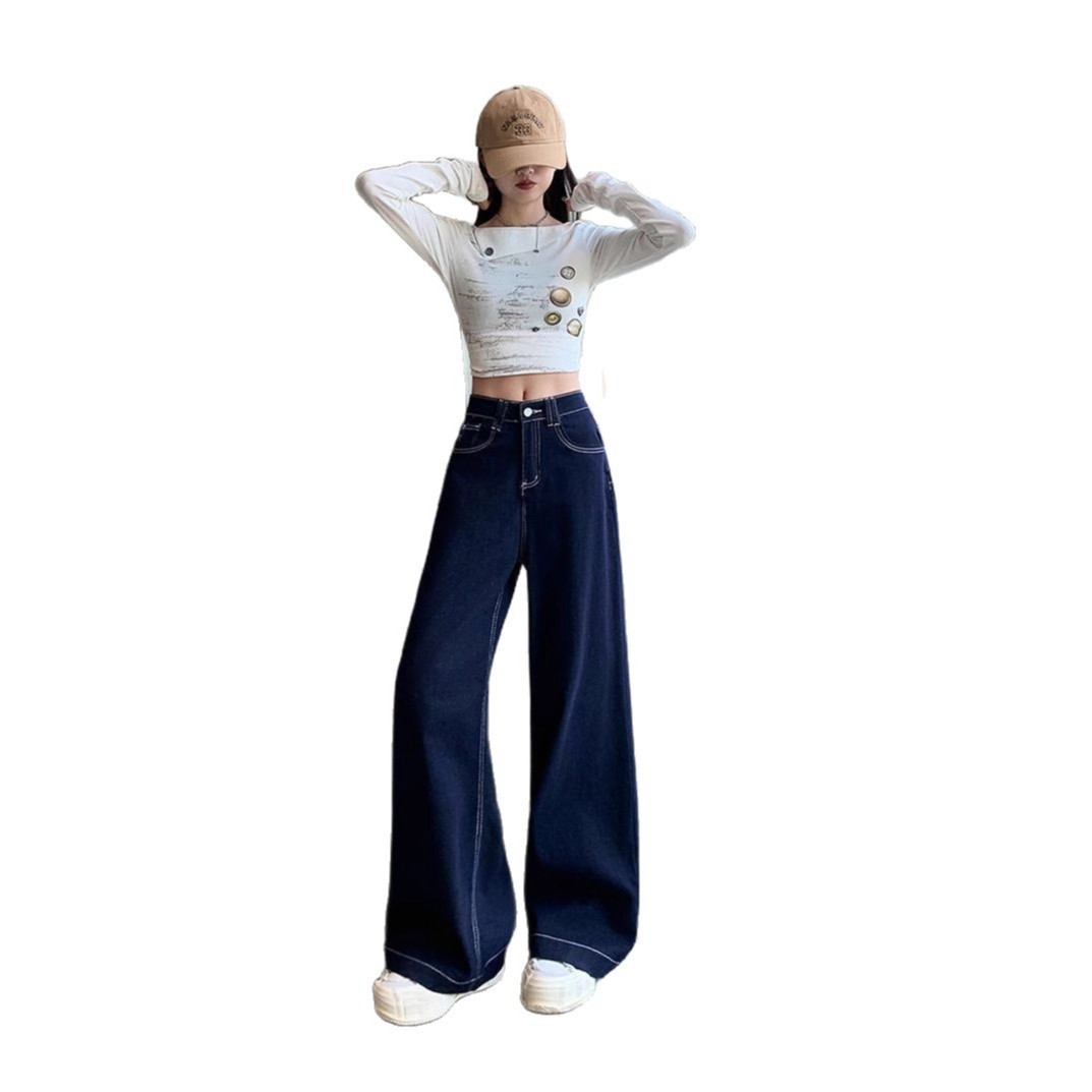 韩版阔腿牛仔裤女2025年春秋季新款高腰垂感慵懒休闲拖地裤