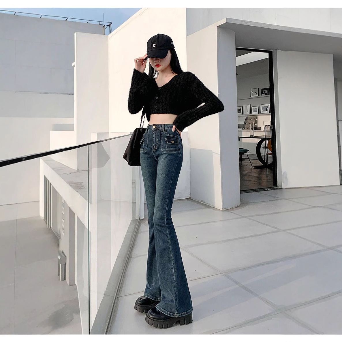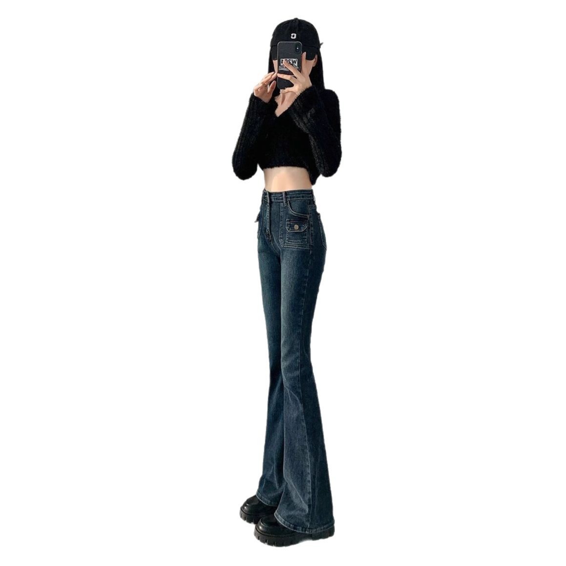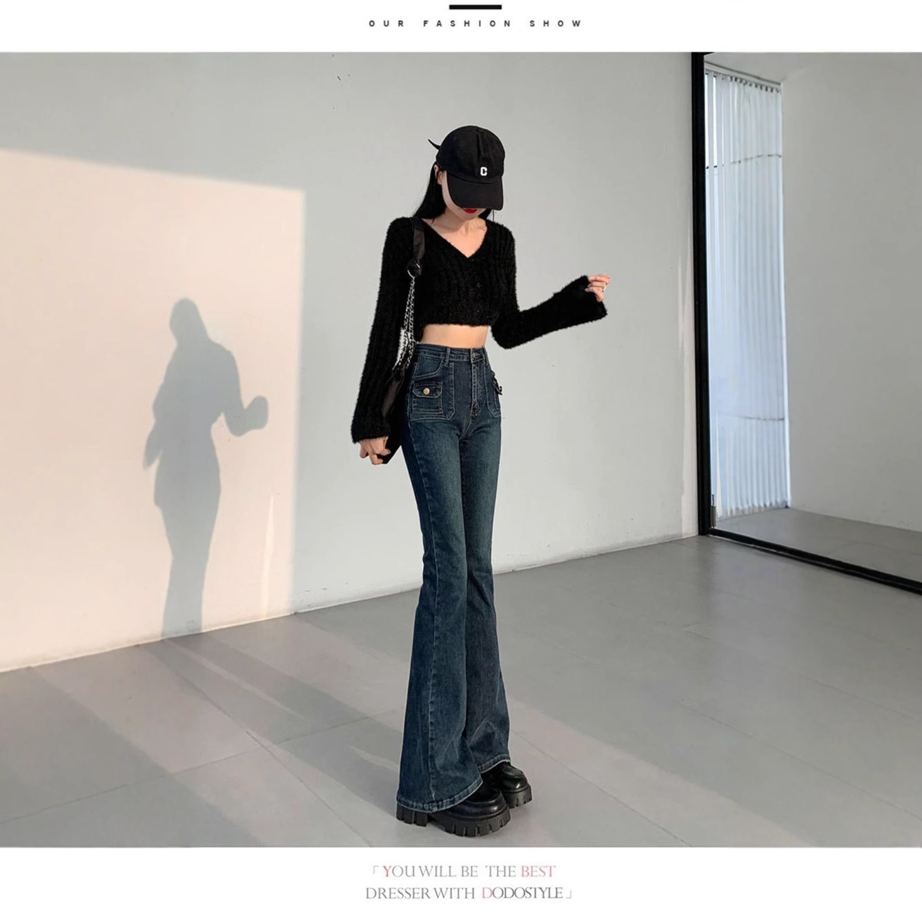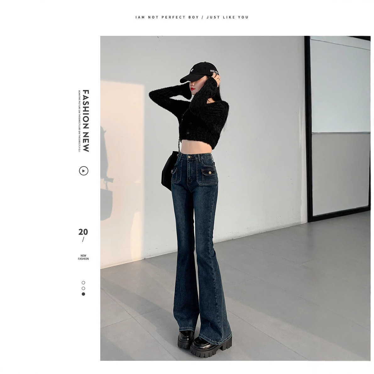 2025春秋季新款设计感复古弹力高腰微喇牛仔裤女修身显瘦喇叭裤子