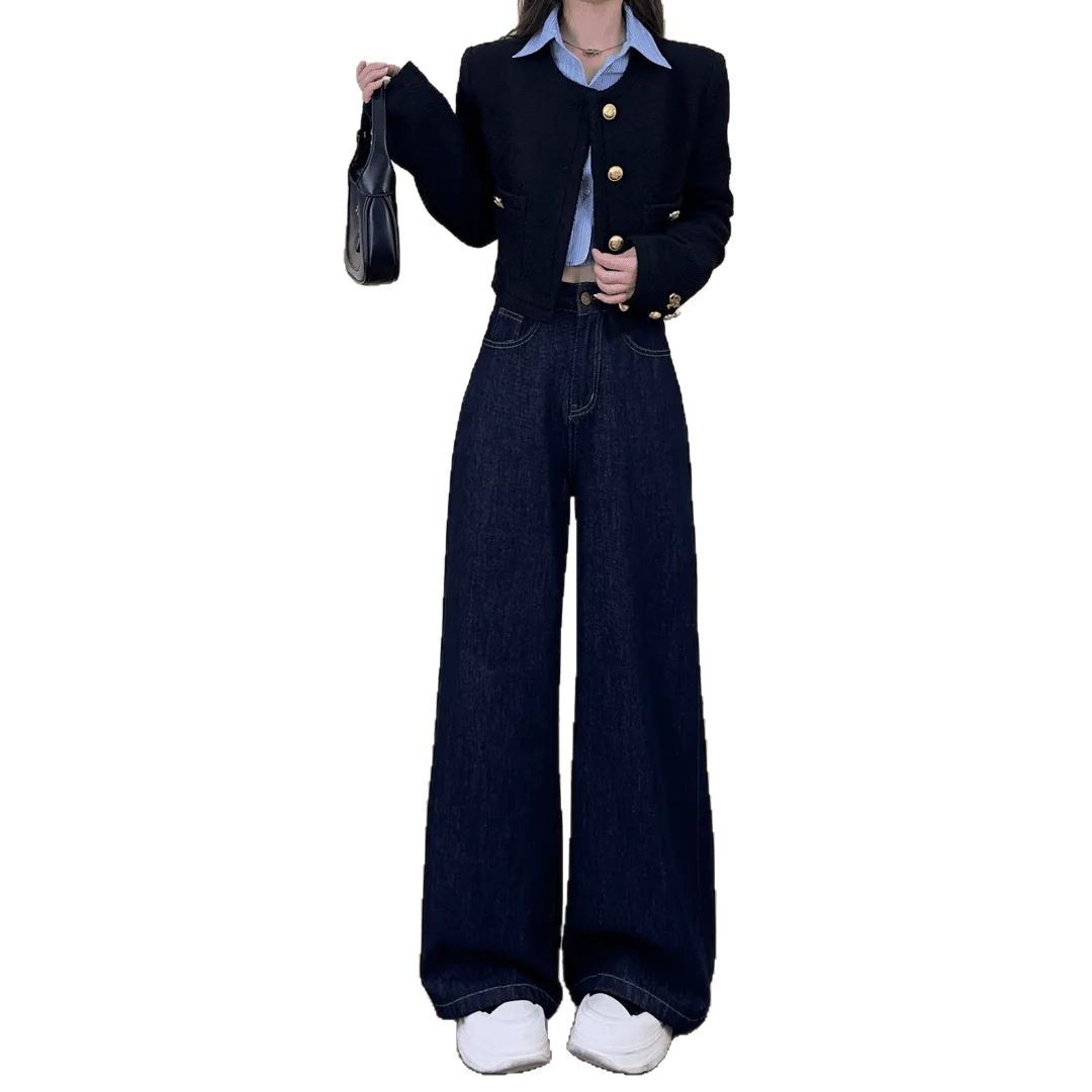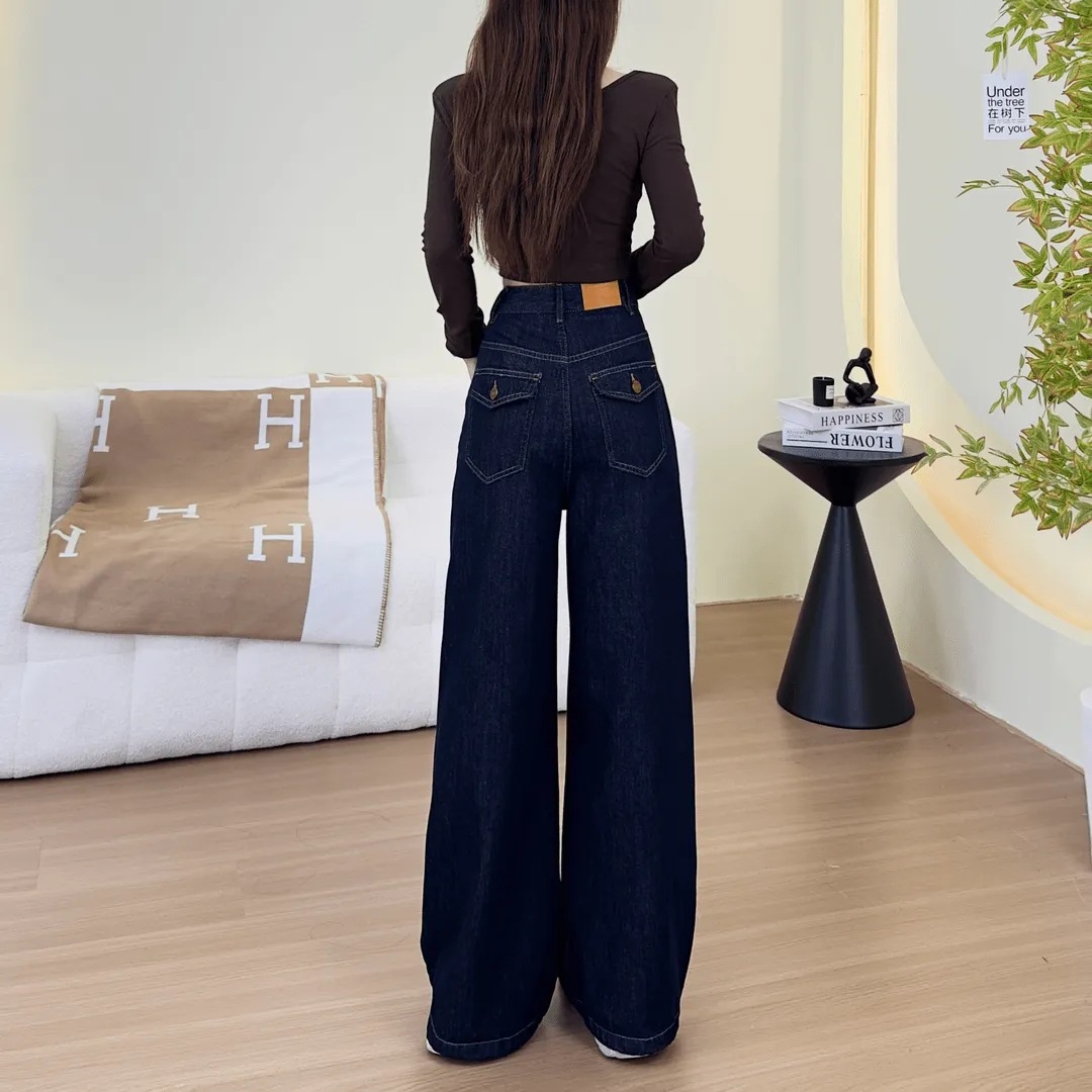 美式宽松垂感阔腿牛仔裤2025秋季新款复古高腰慵懒休闲拖地裤