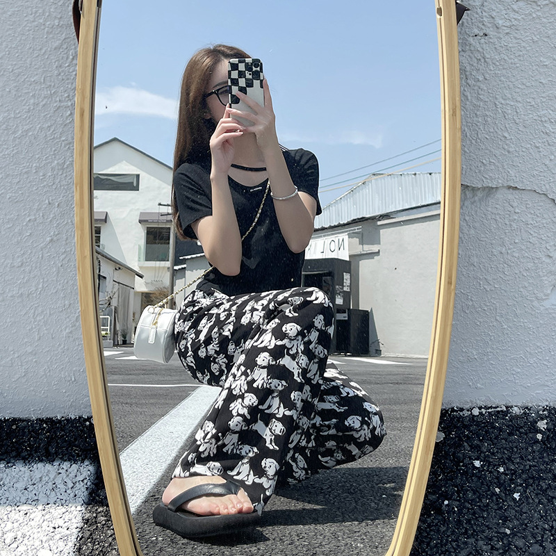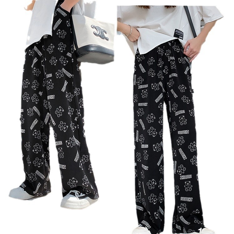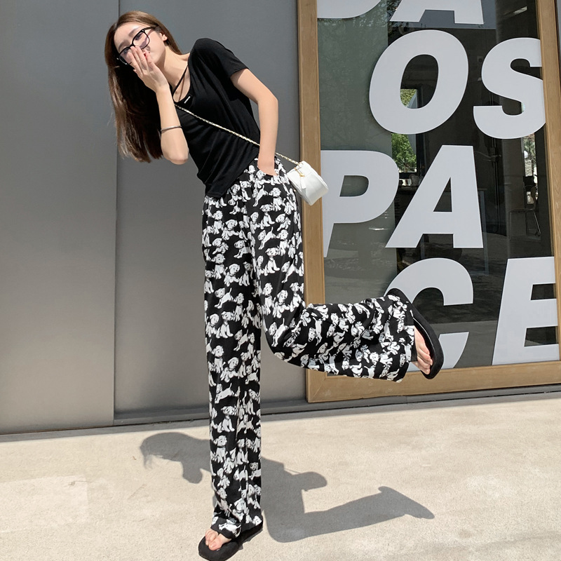网红夏季冰丝花裤子女宽松显瘦大码薄款ins潮高腰垂感休闲阔腿裤