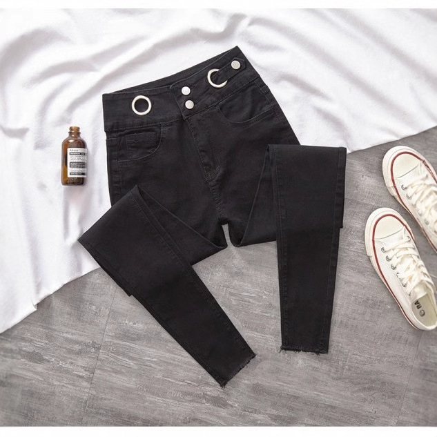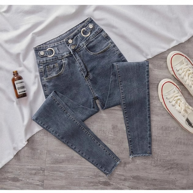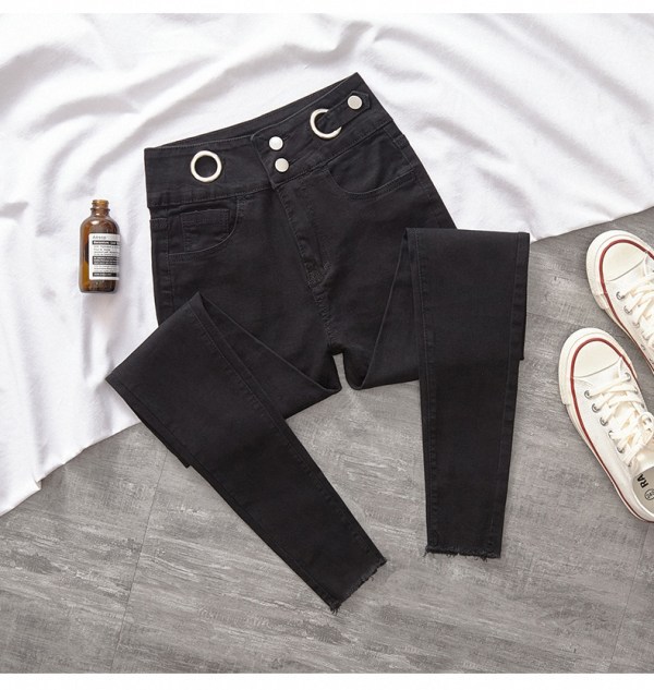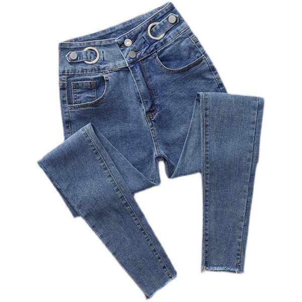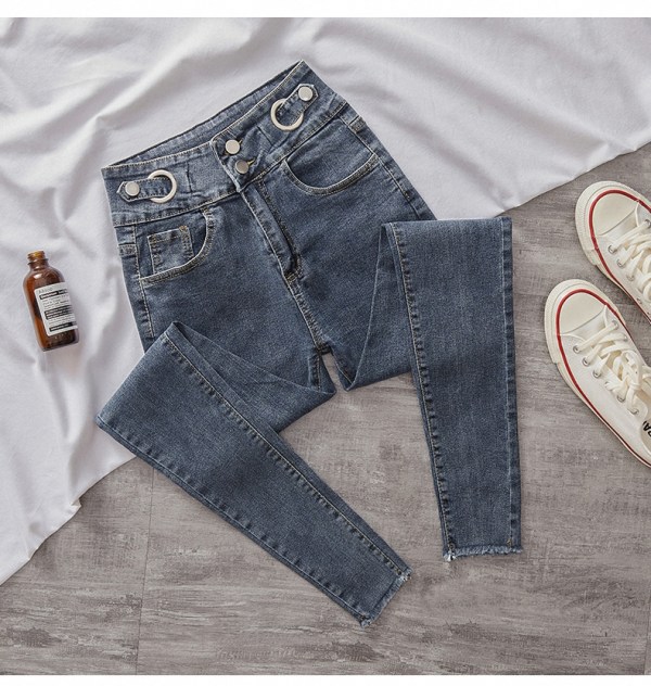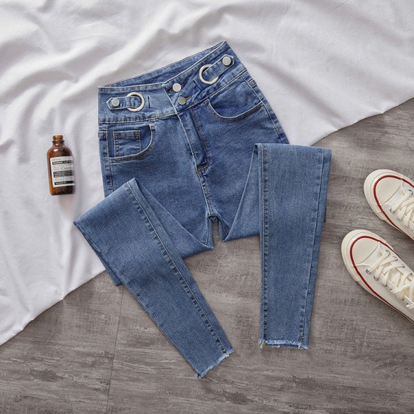 高腰牛仔裤女小脚裤秋季2025新款弹力显瘦修身毛边九分紧身铅笔裤