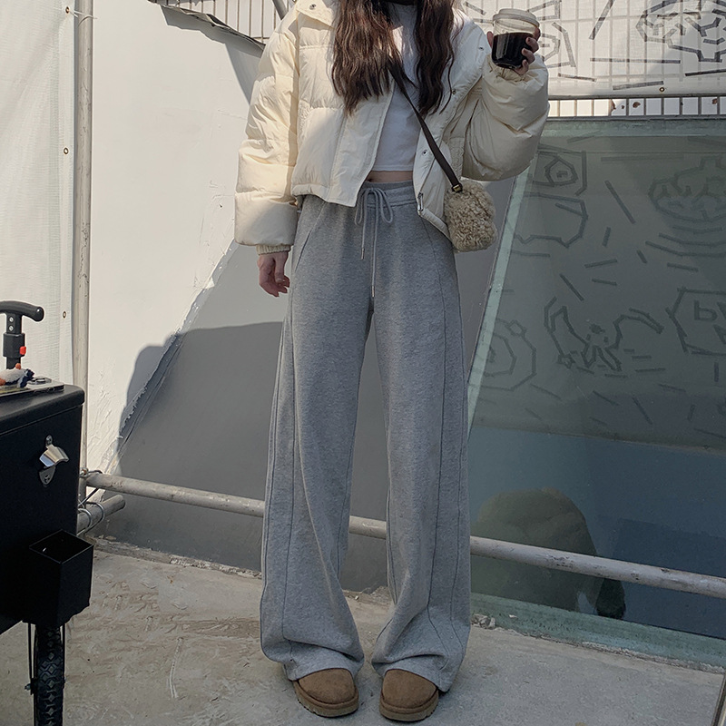 慵懒拖地灰色休闲卫裤女春秋新款宽松显瘦小众百搭阔腿运动裤