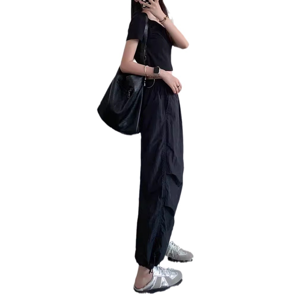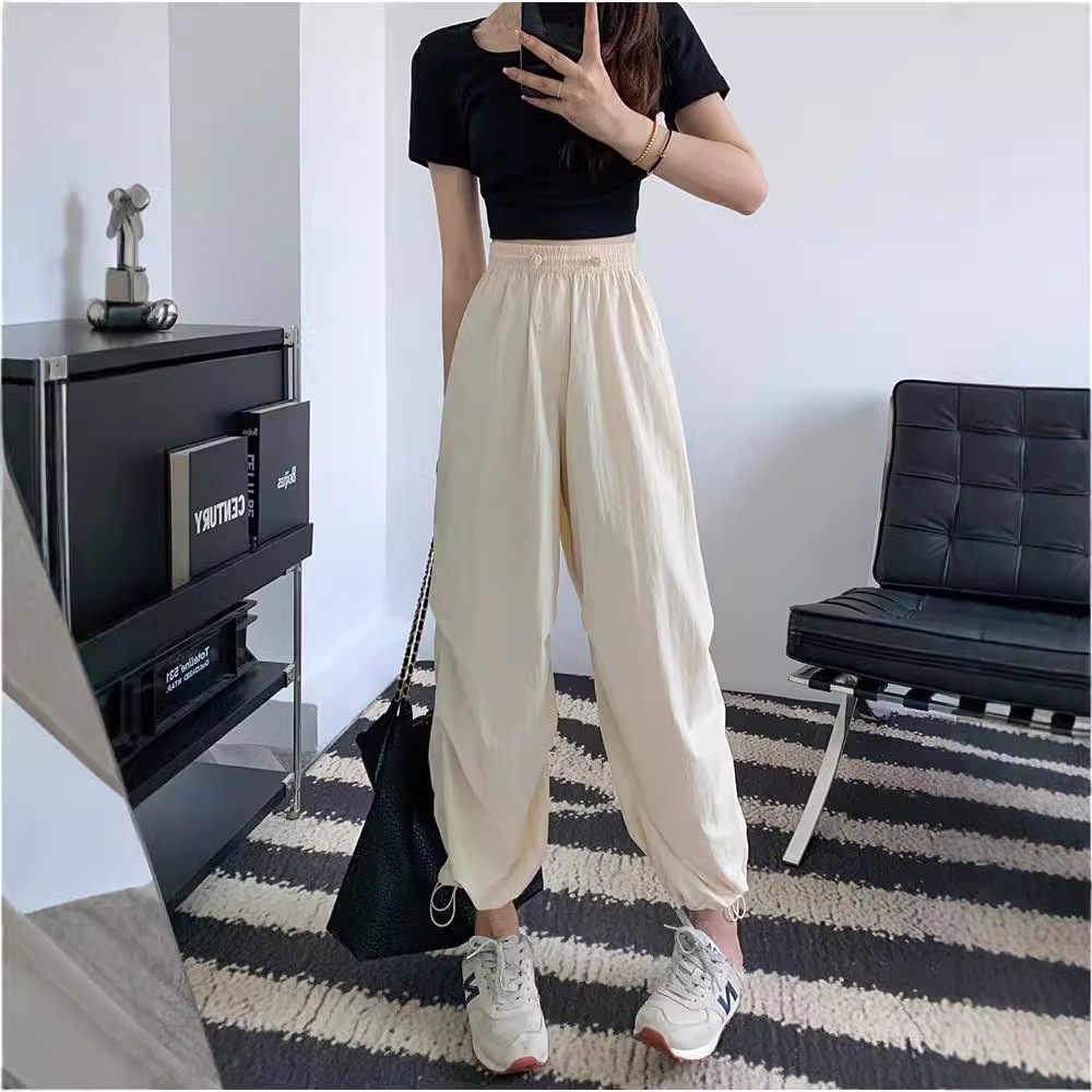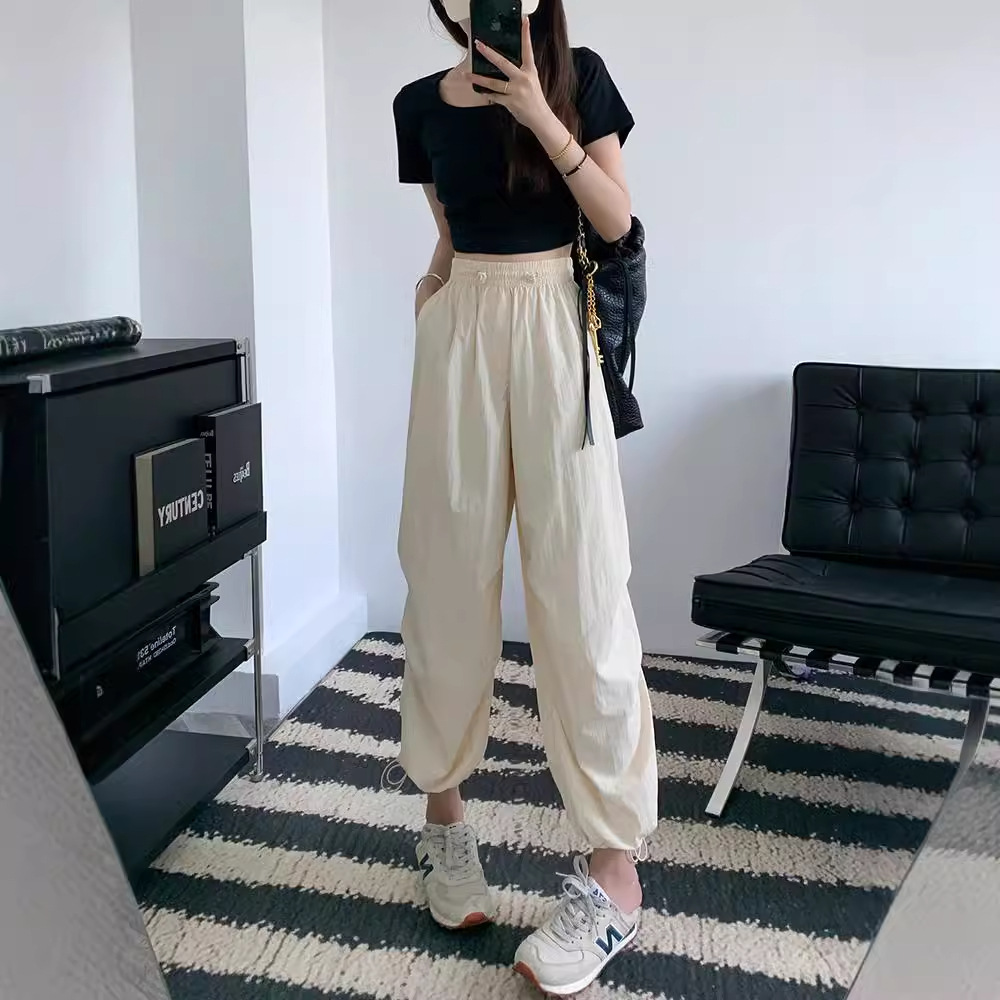 夏季冰丝束脚运动长裤女款轻薄透气防晒降落伞裤小个子休闲工装裤
