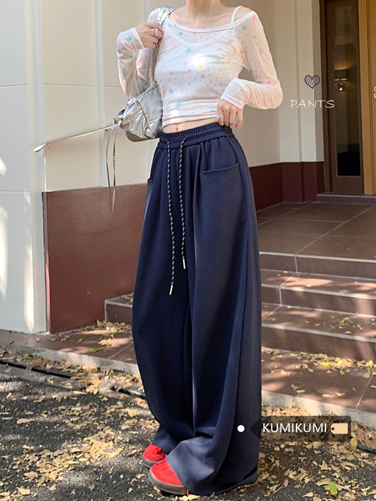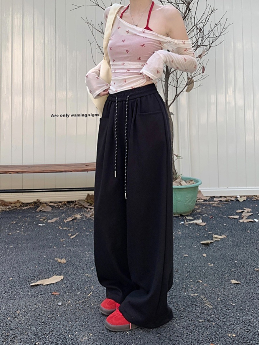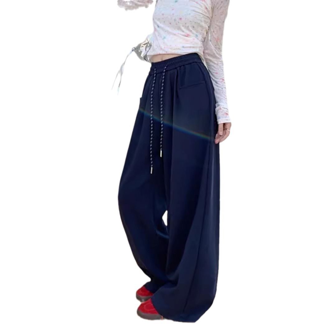 休闲裤女松紧腰抽绳阔腿裤早秋宽松显瘦裤子直筒裤拖地裤卫裤长裤