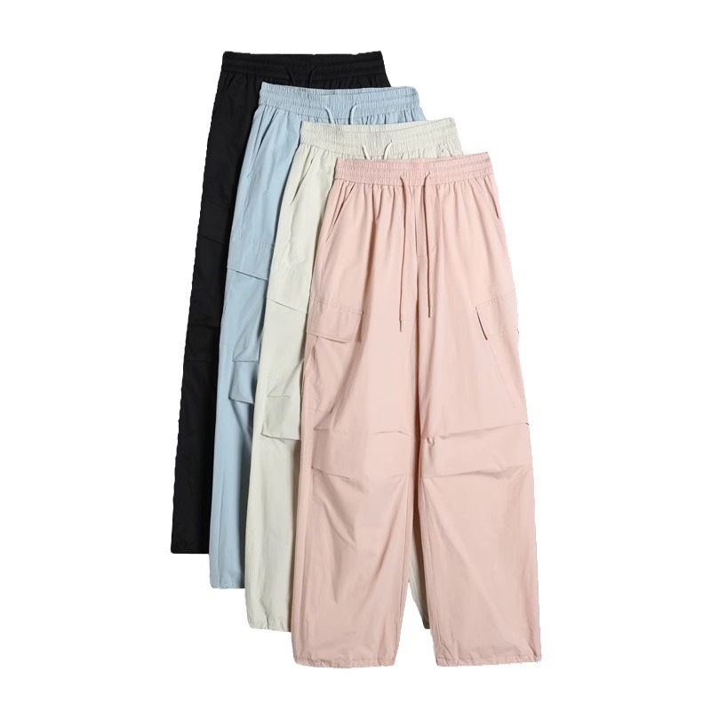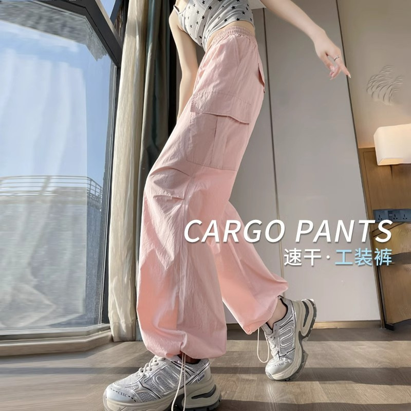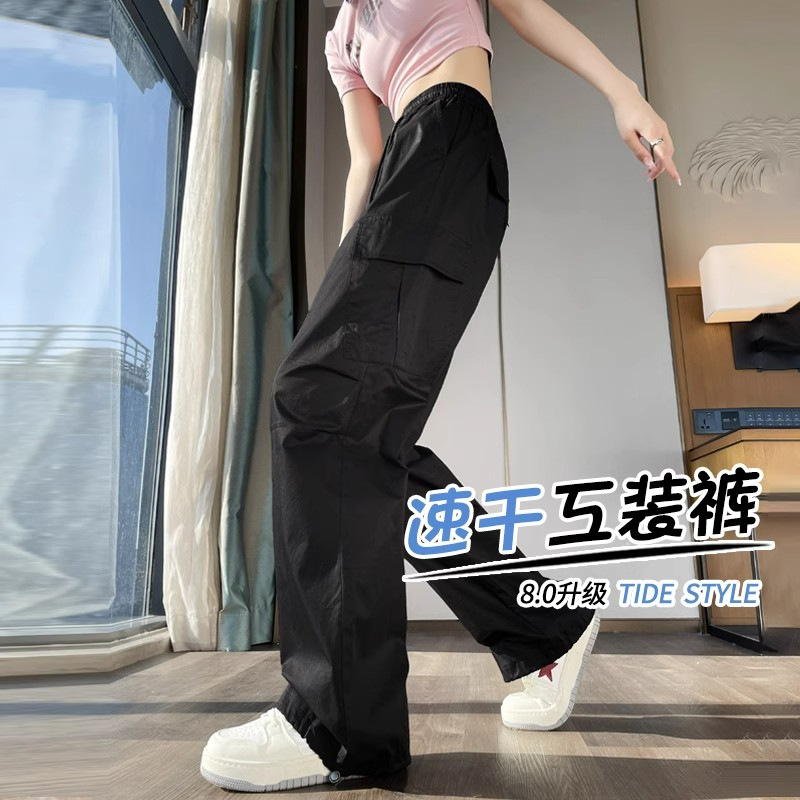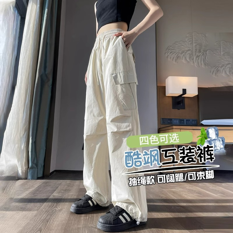 早秋潮流美式工装裤夏季薄款小个子高腰直筒束脚登山直筒运动裤女