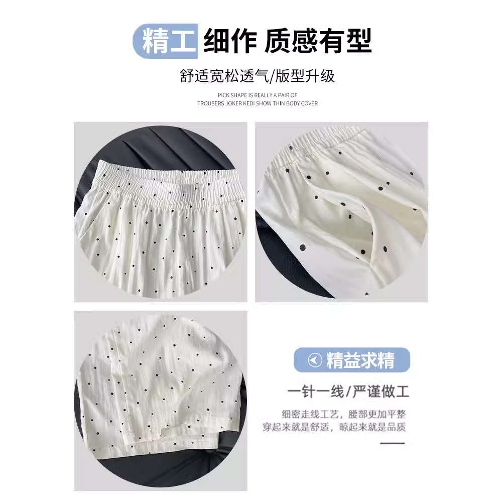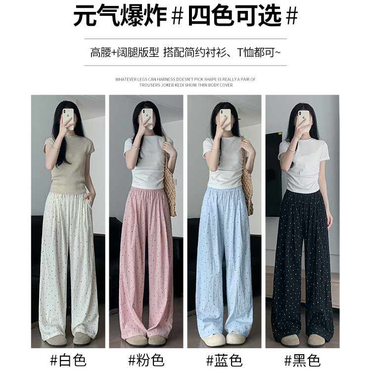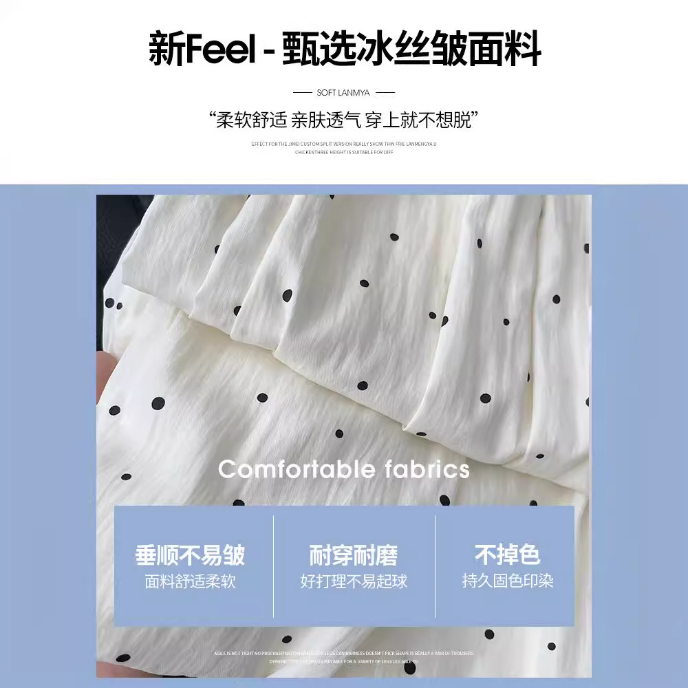 蓝色波点裤子薄款夏季女休闲裤肌理感慵懒风遛弯裤冰丝山本裤长裤