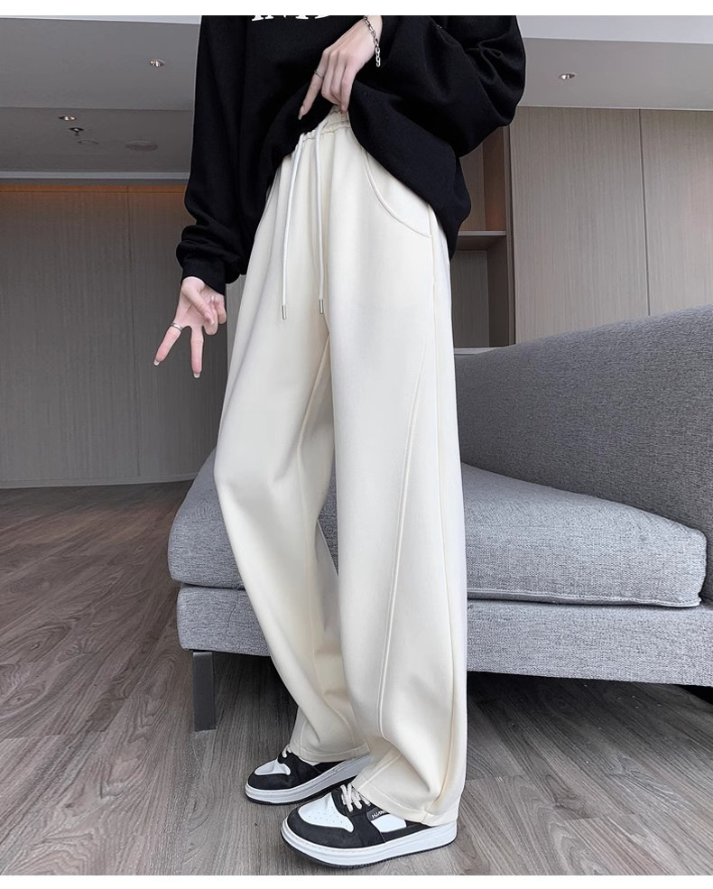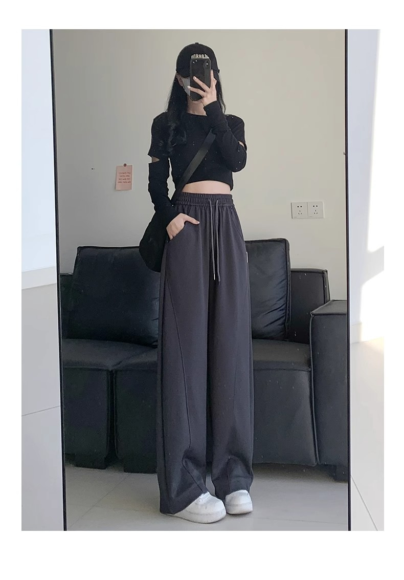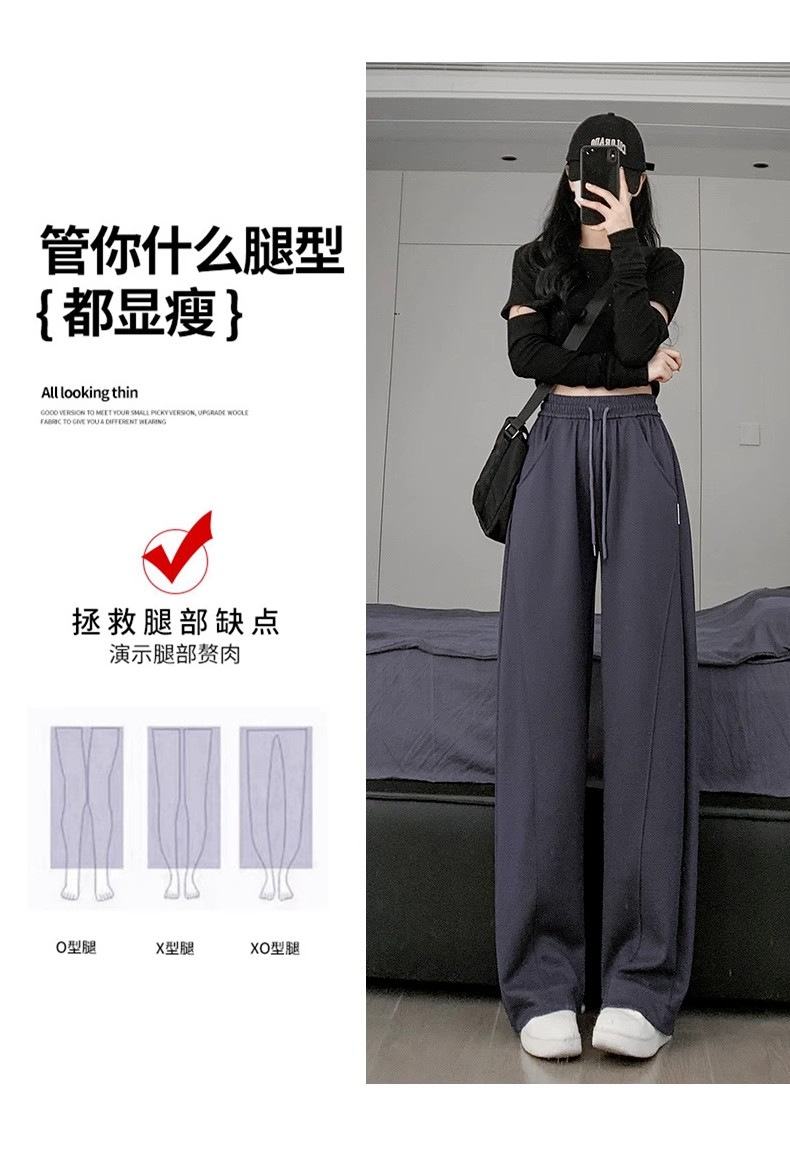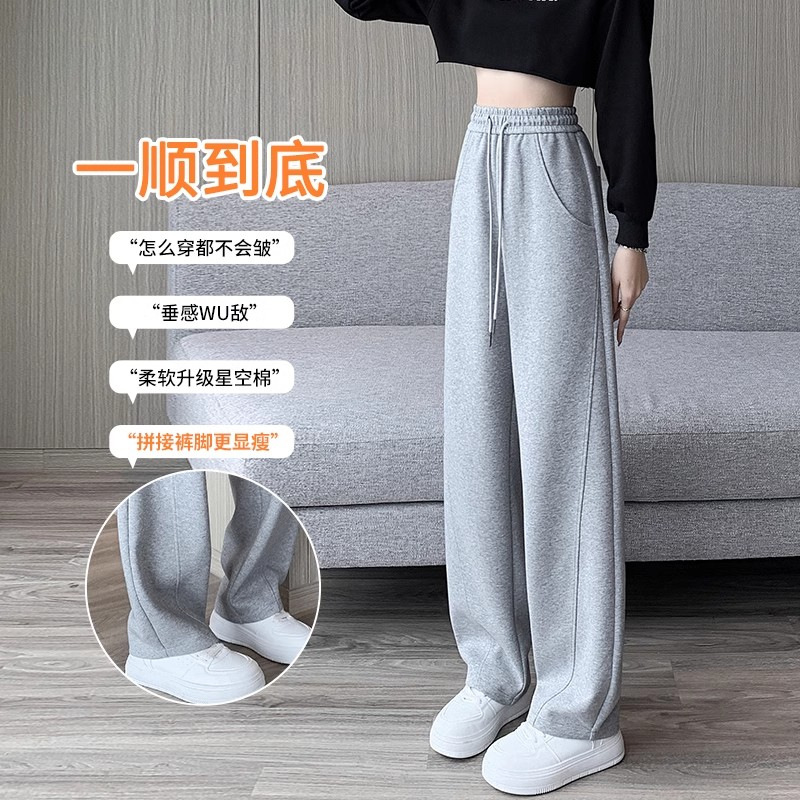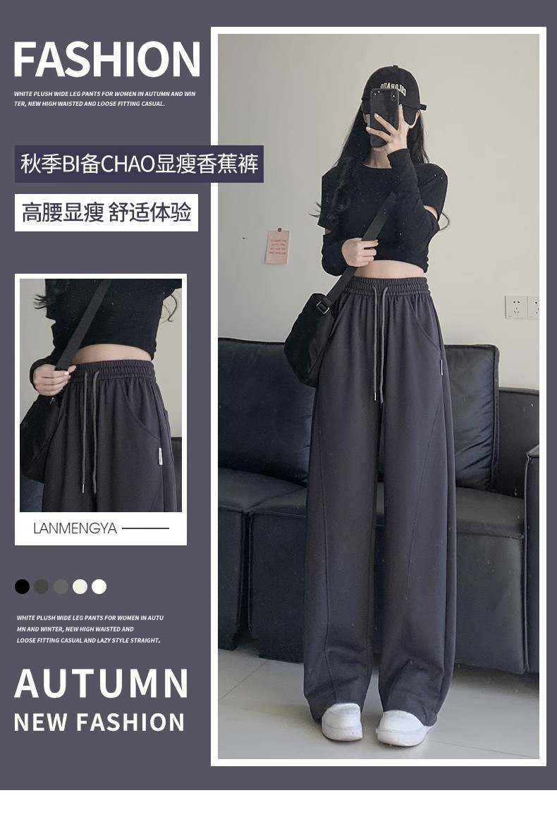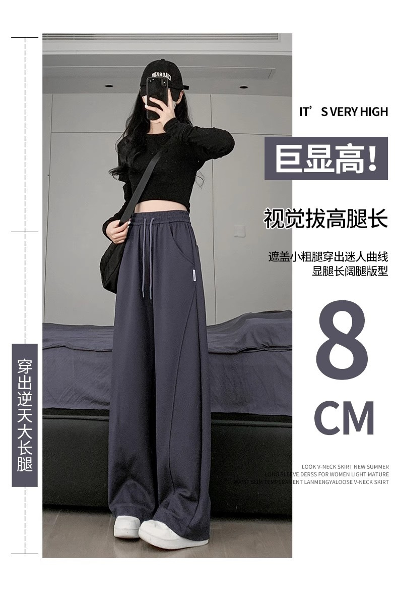 白灰色运动裤女新款宽松休闲显瘦阔腿裤小个子高腰运动卫裤女