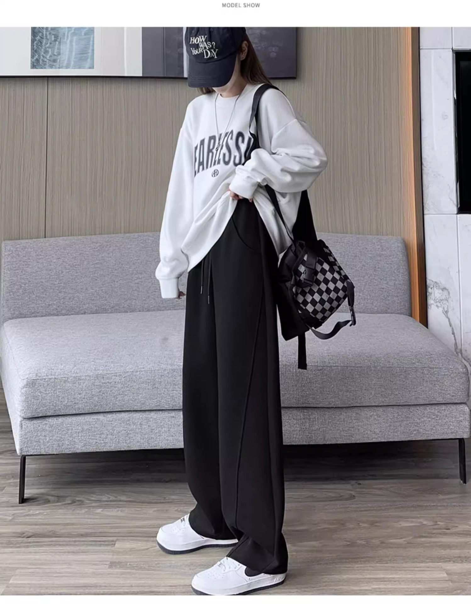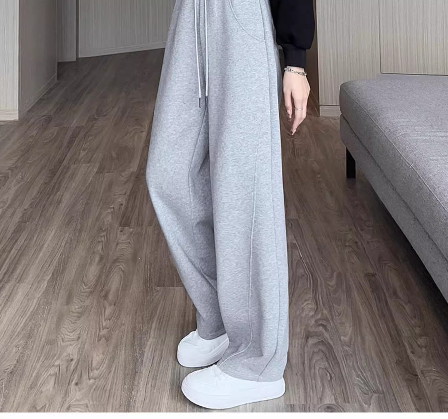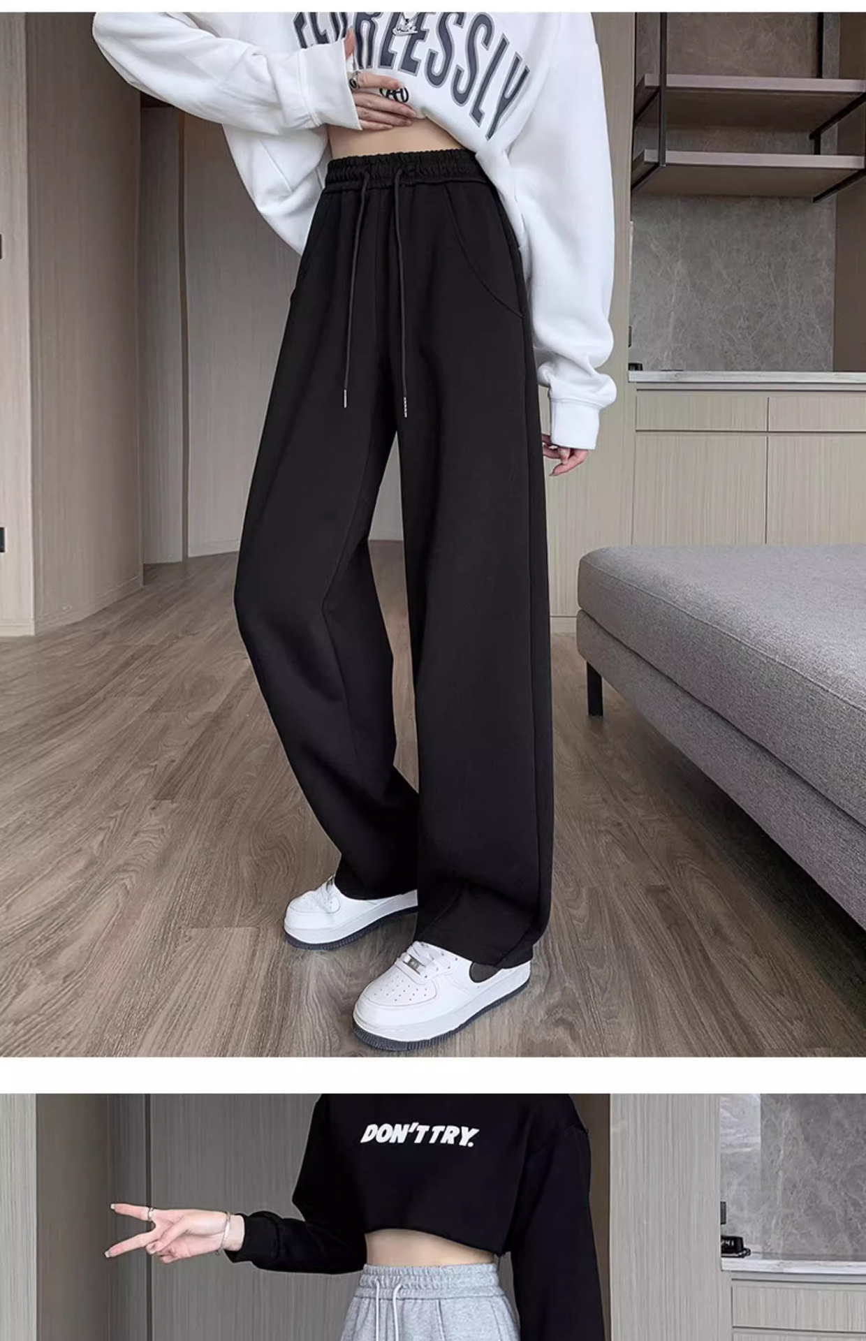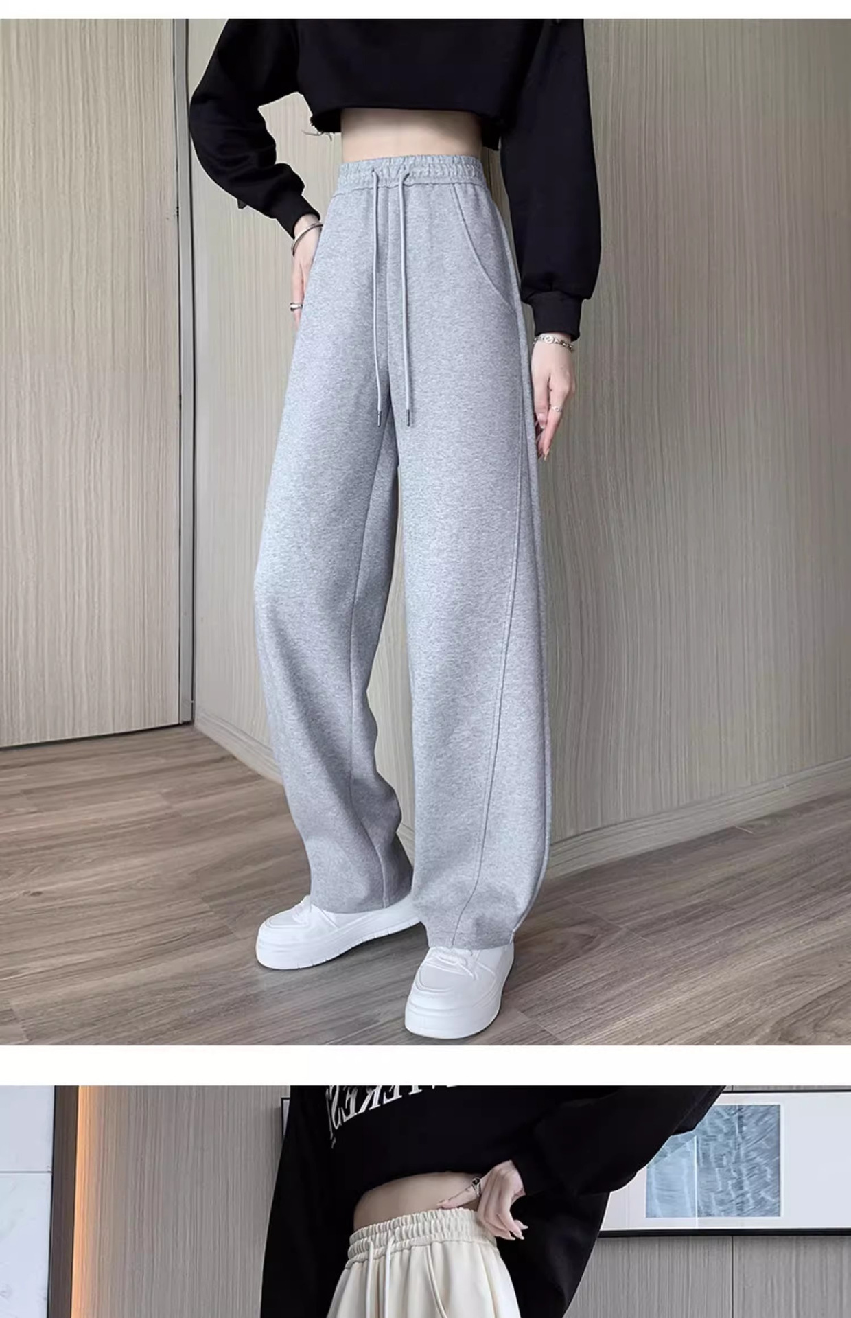 白灰色运动裤女新款宽松休闲显瘦阔腿裤小个子高腰运动卫裤女
