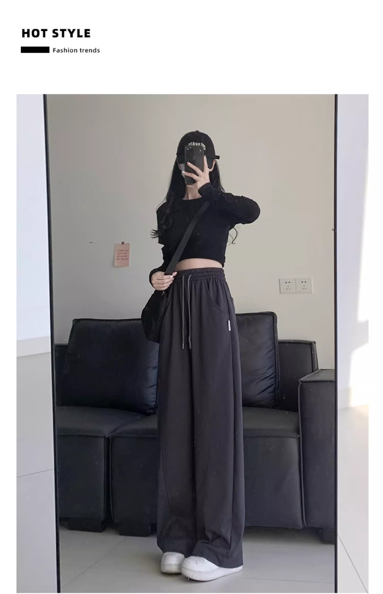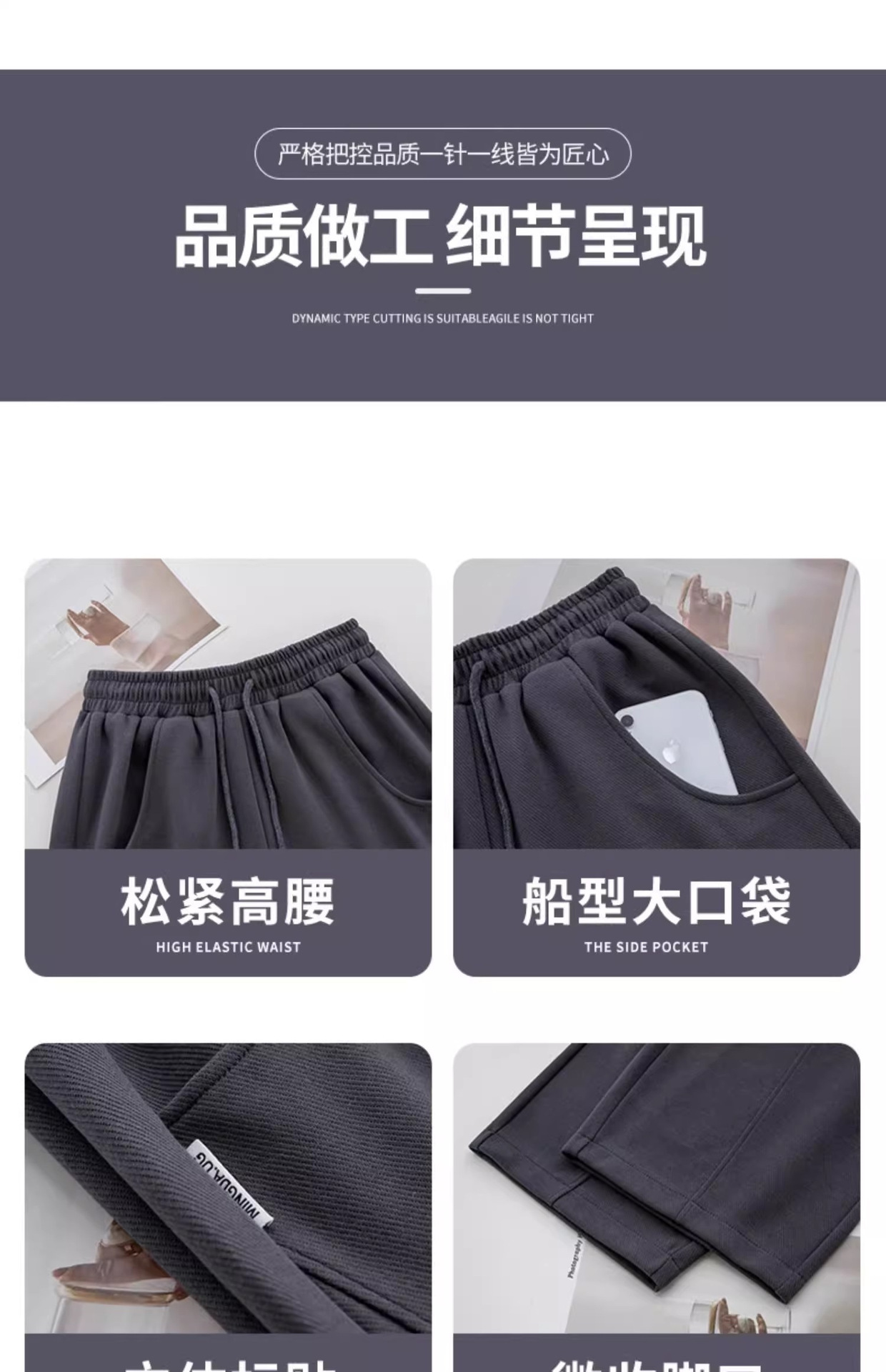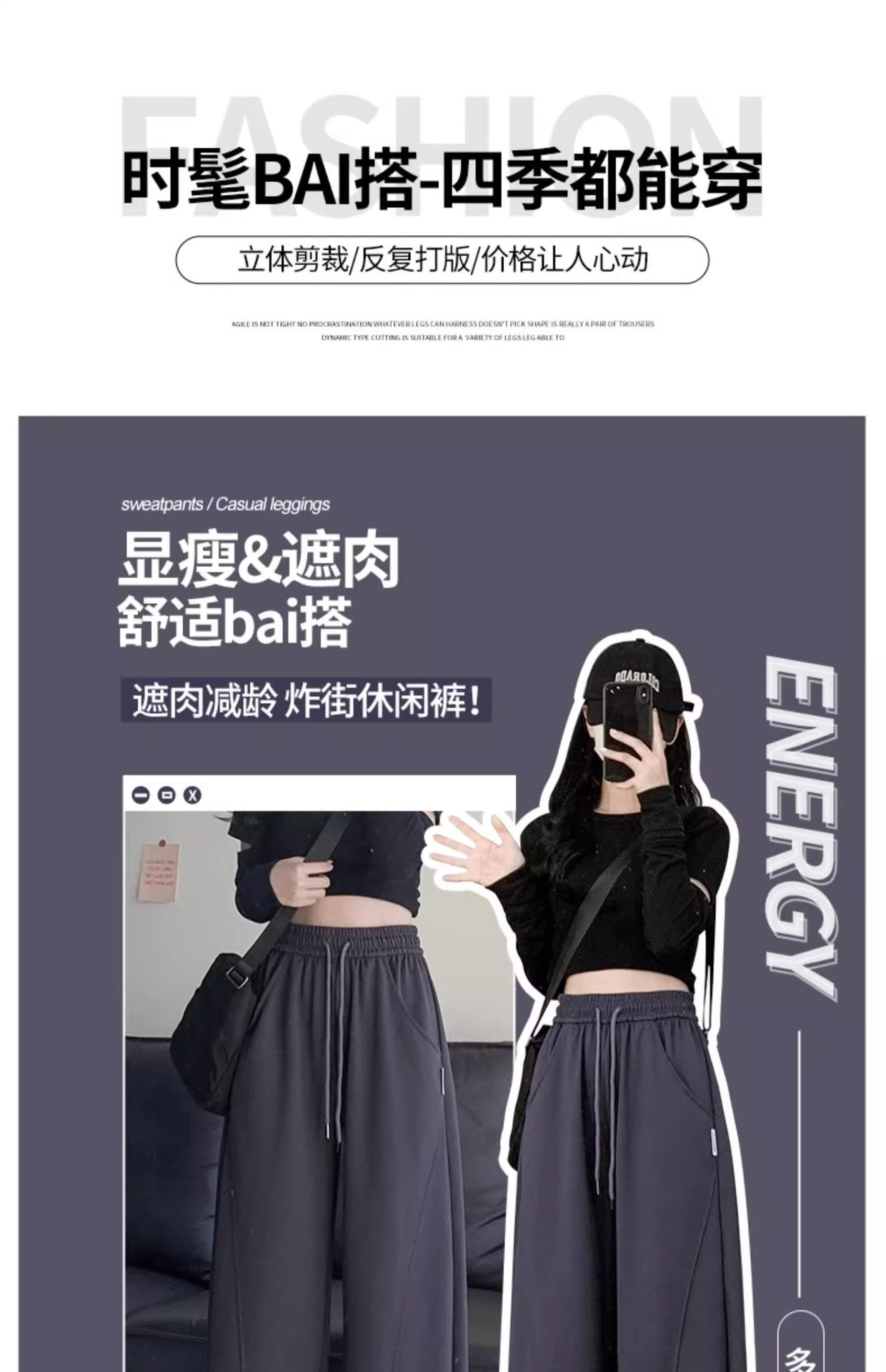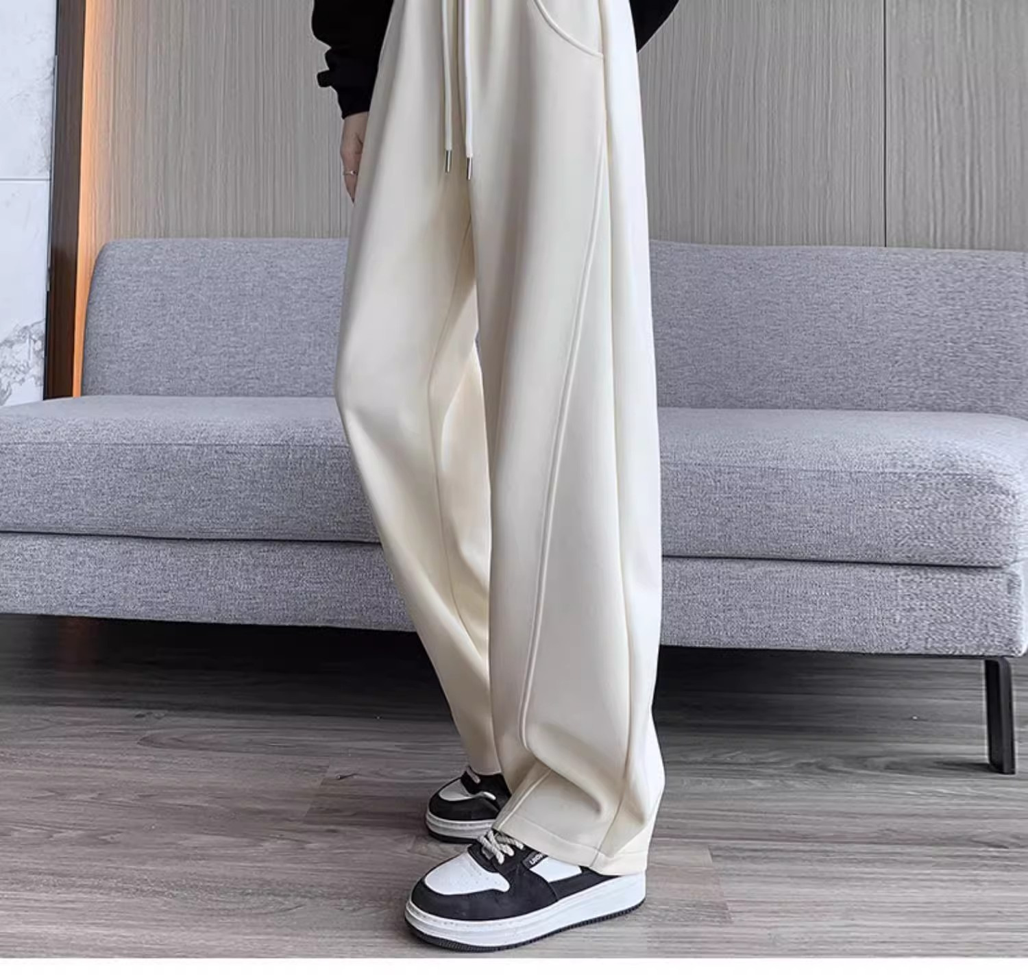 白灰色运动裤女新款宽松休闲显瘦阔腿裤小个子高腰运动卫裤女