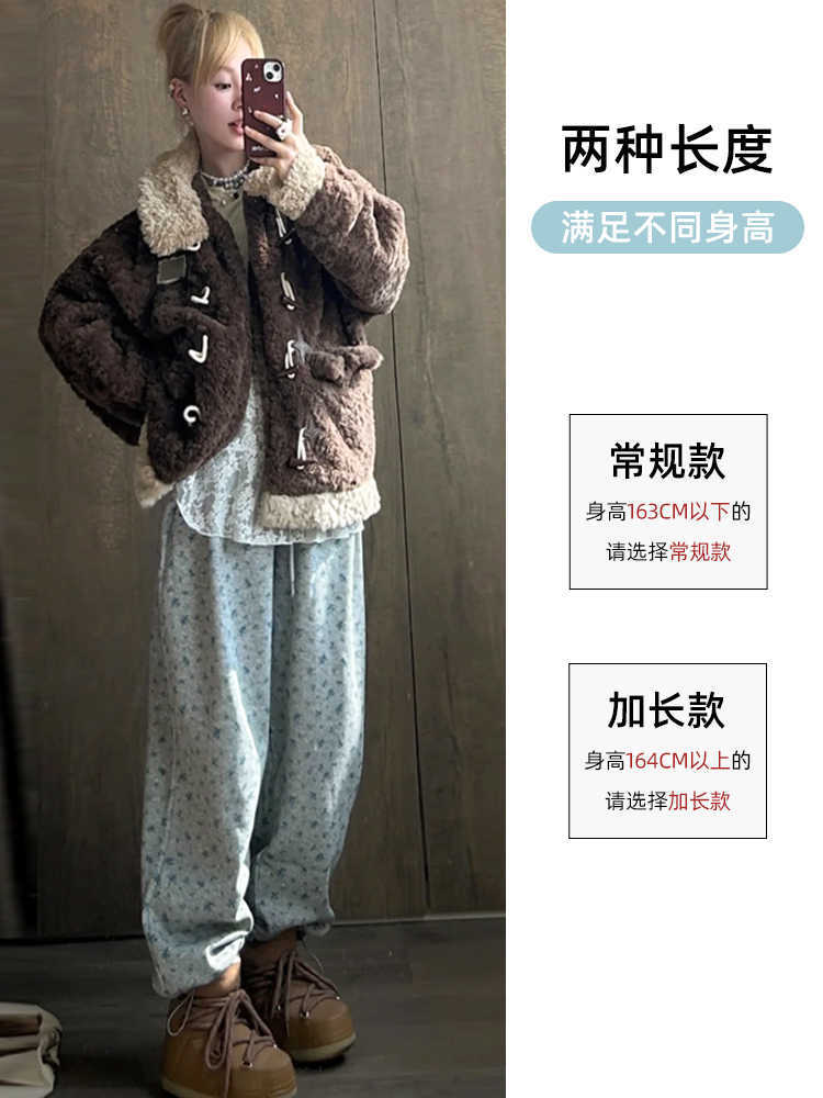 灰色碎花运动裤女宽松直筒2025新款春秋高腰休闲阔腿裤小个子卫裤