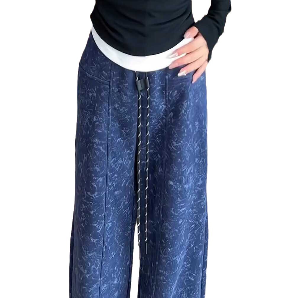 扎染香蕉卫裤女年秋季新款大码微胖mm时尚百搭显瘦阔腿弯刀裤