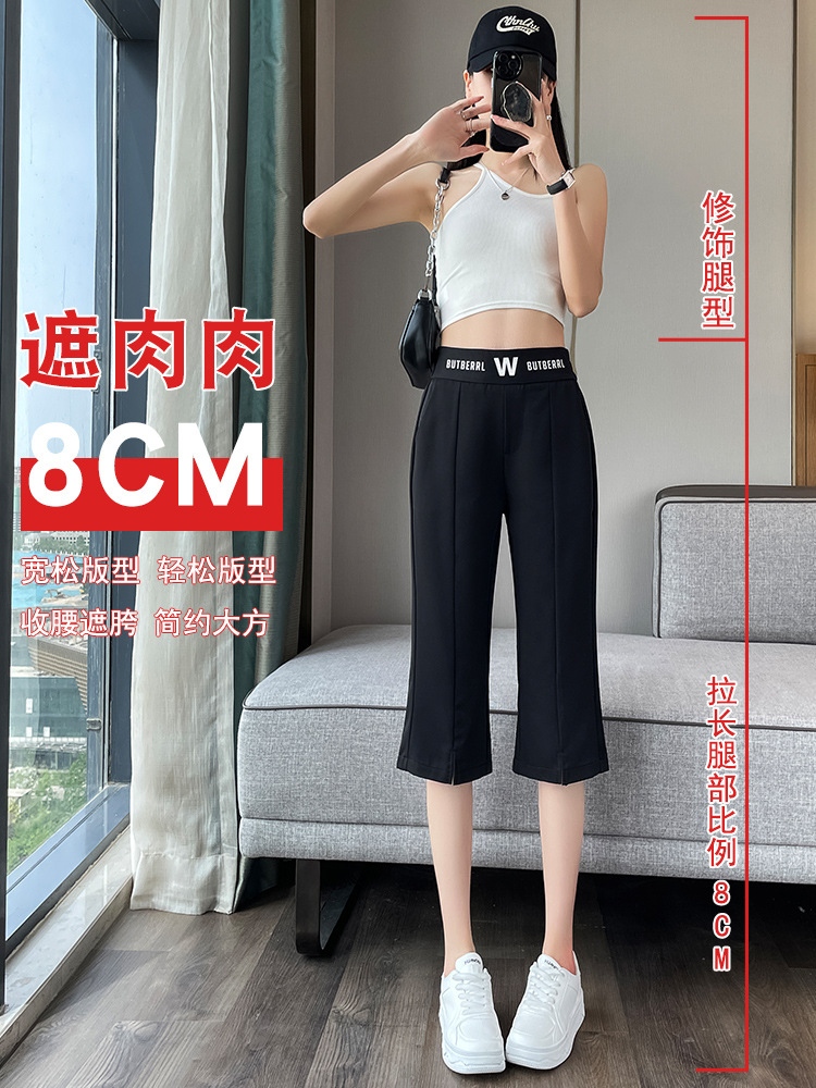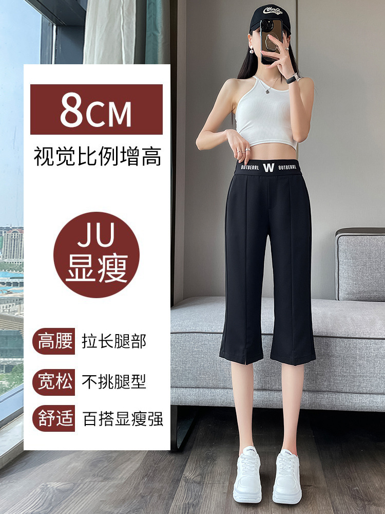七分微喇裤女夏季薄款裤子2025新款垂感阔腿开叉中裤7分喇叭女裤