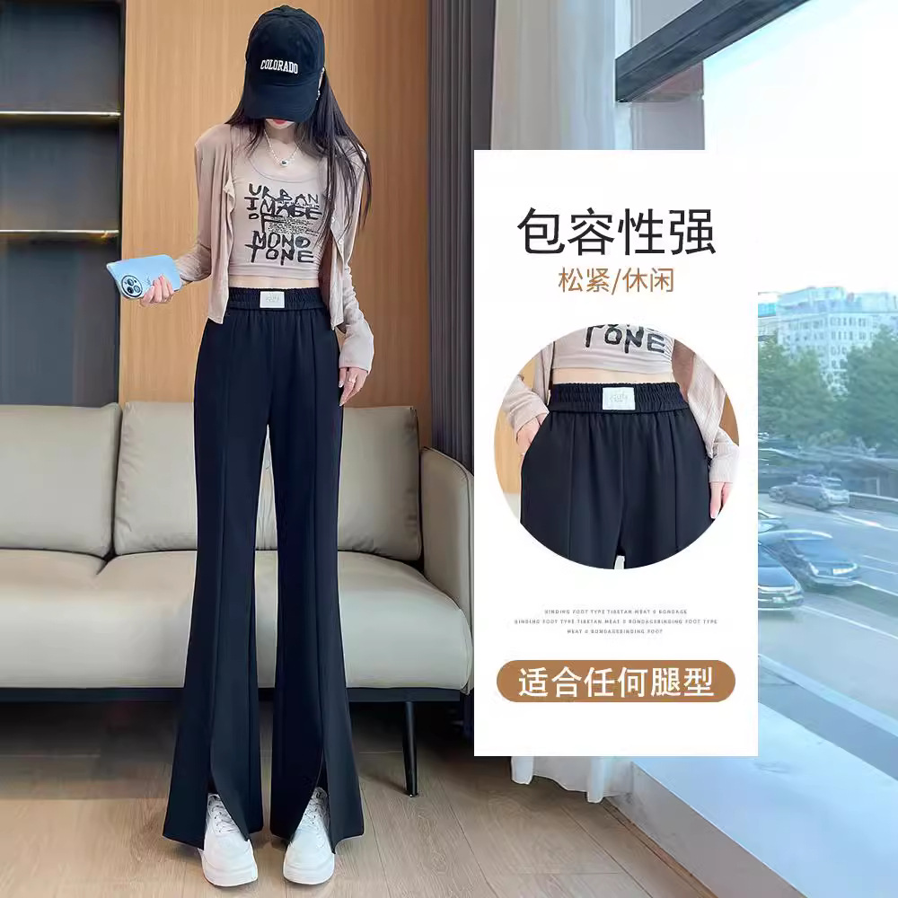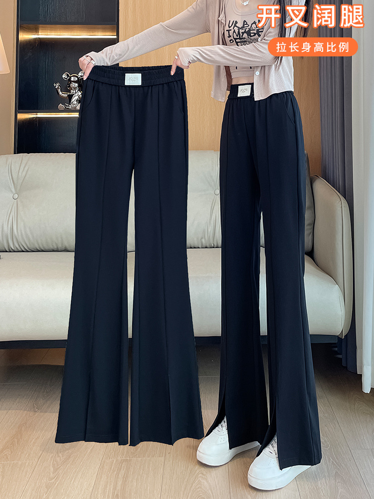 微喇裤女春秋开叉喇叭裤子女新款高腰显瘦直筒休闲垂感阔腿裤