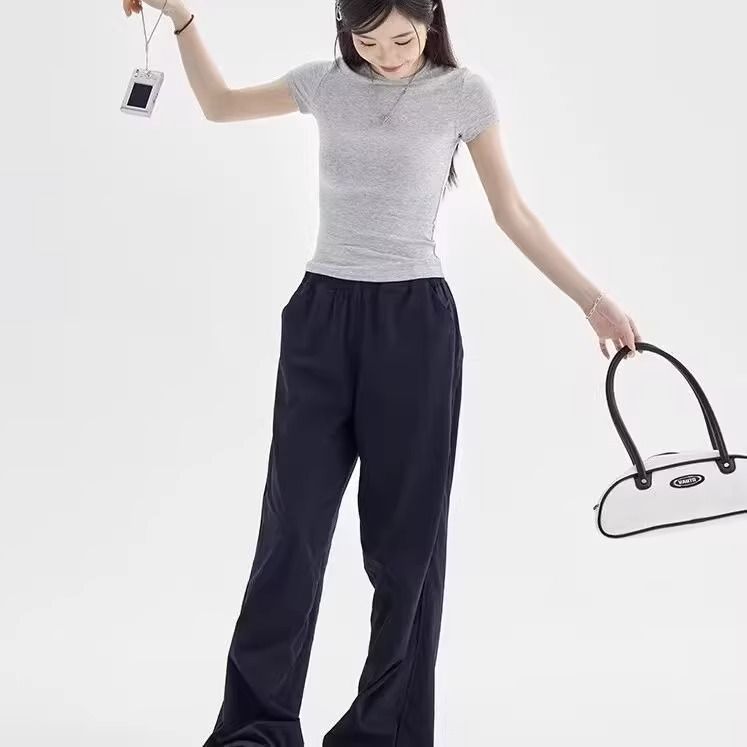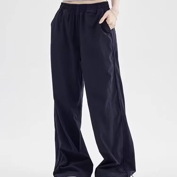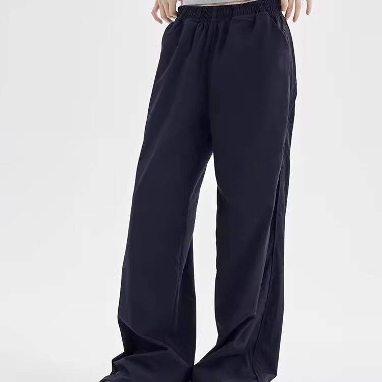 宽松bf慵懒风伸缩脚口松紧腰直筒阔腿登山工装运动休闲裤子女新款