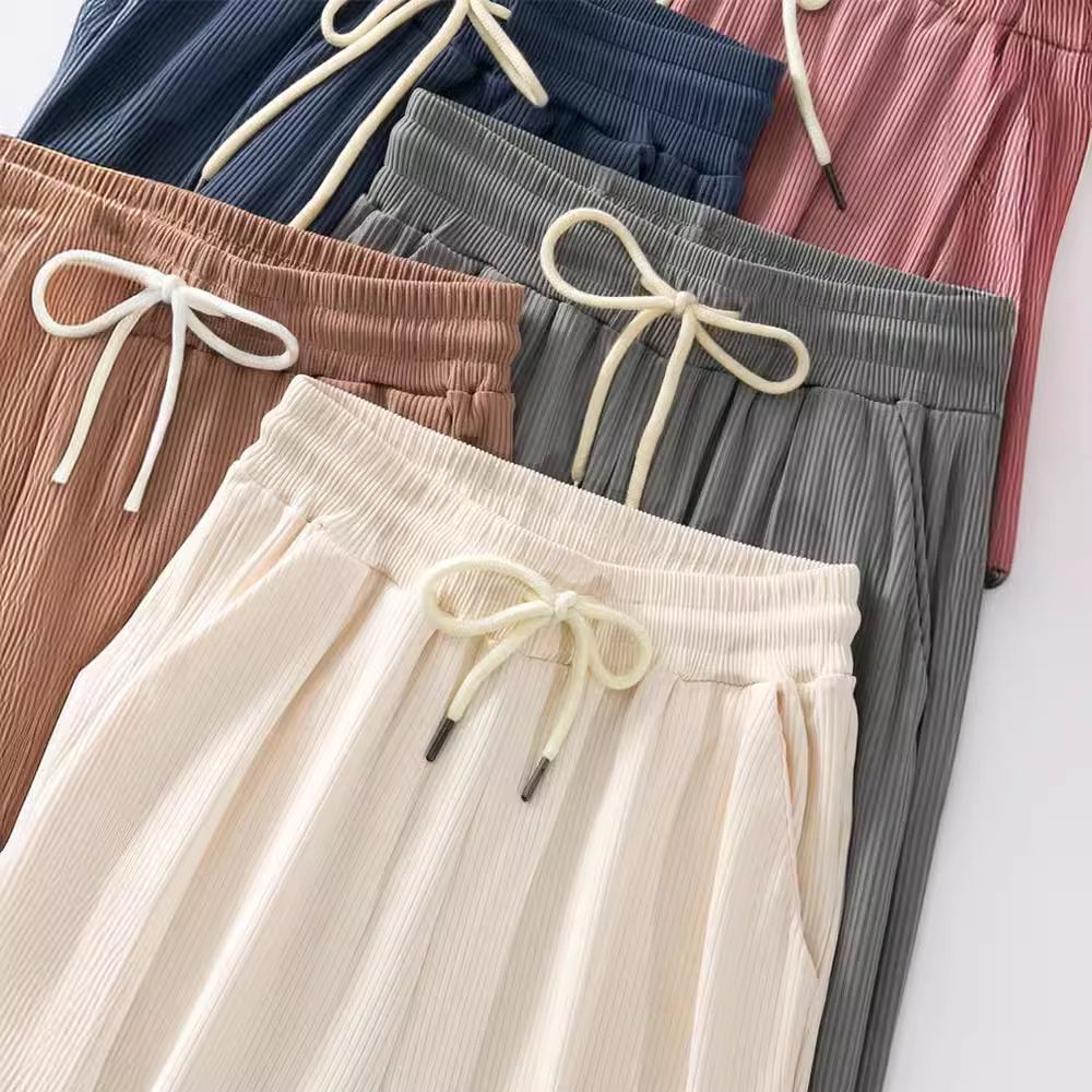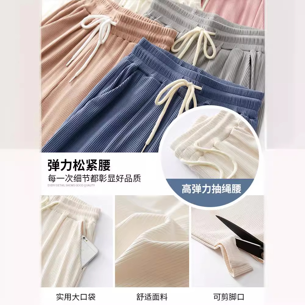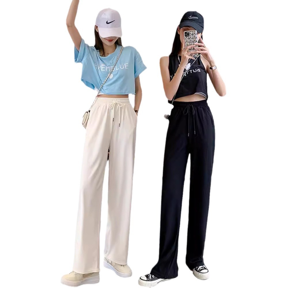 小个子冰丝阔腿裤女夏季薄款高腰垂感直筒春秋白色雪纺拖地休闲裤