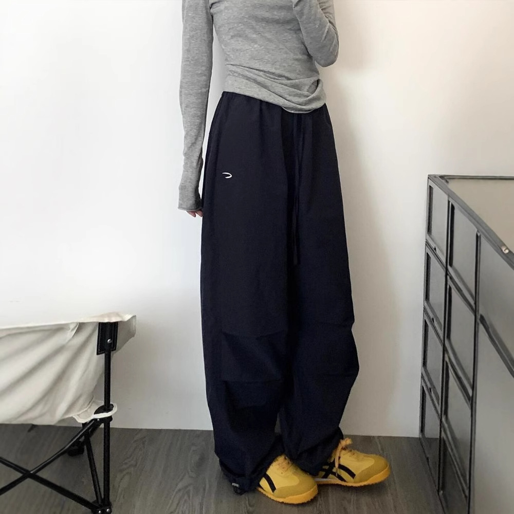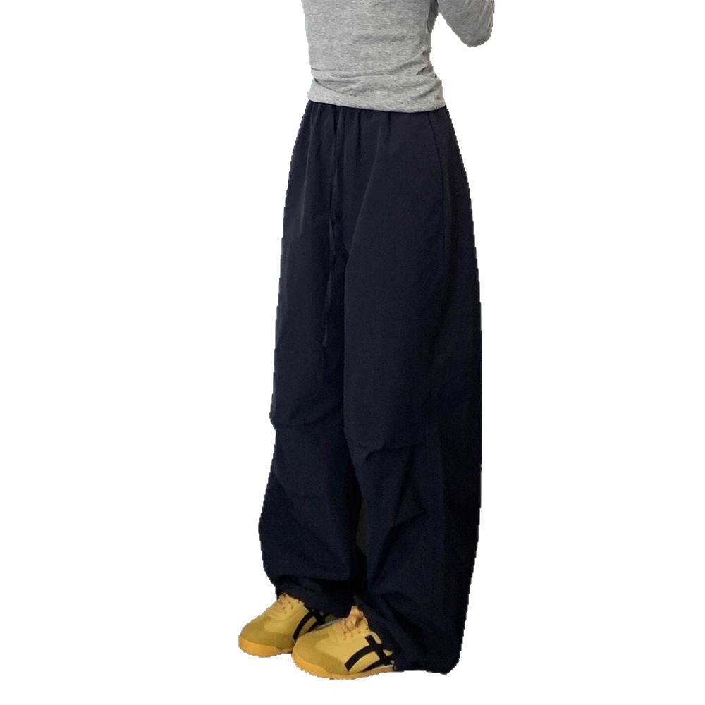 藏青色阔腿工装裤女2025春季新款胖mm大码高腰宽松显瘦拖地休闲裤