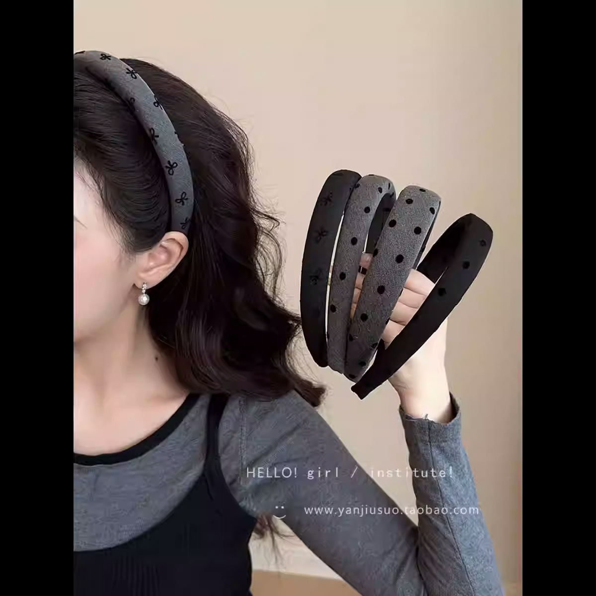 格雷少女 灰色波点发箍女高颅顶宽边发卡头饰高级感洋气时尚头箍