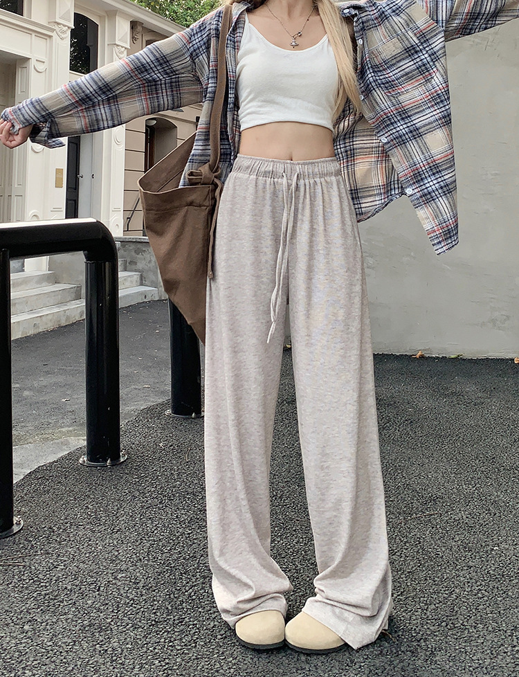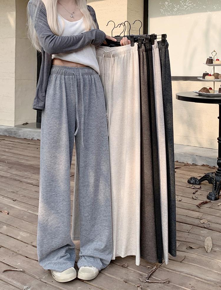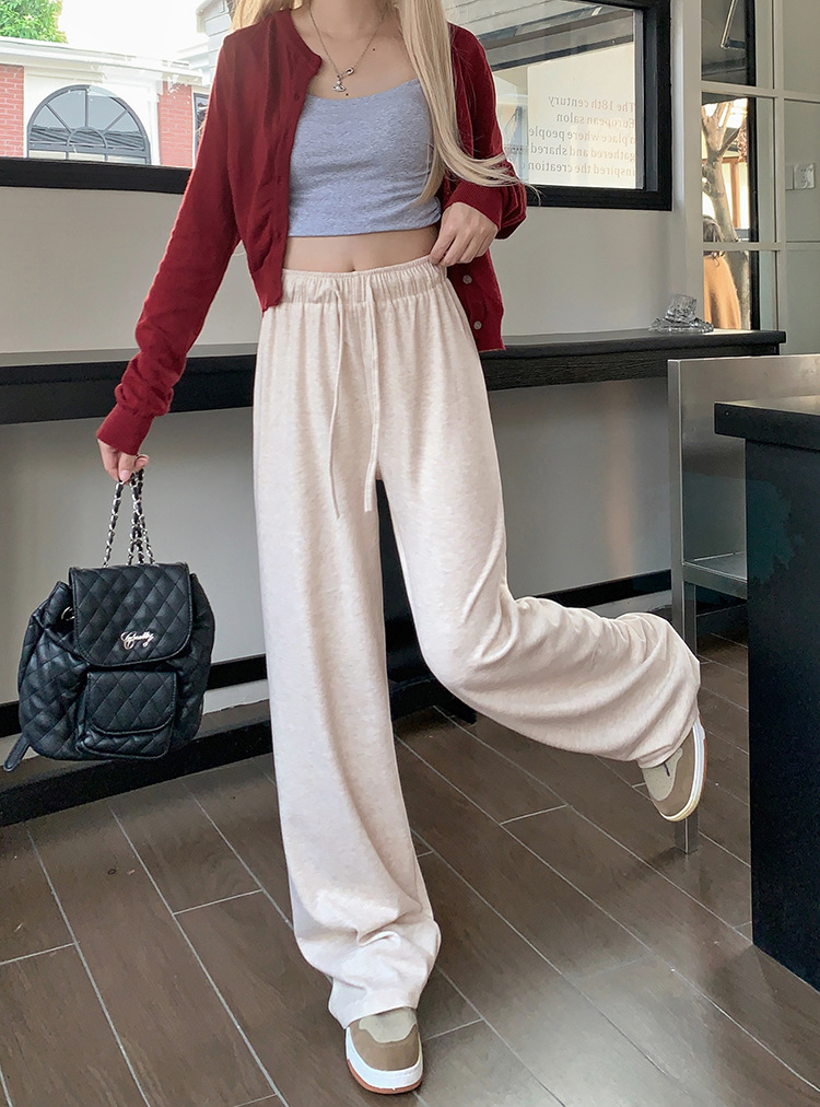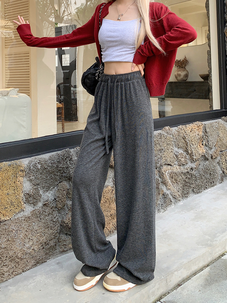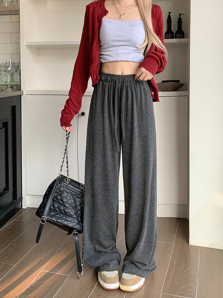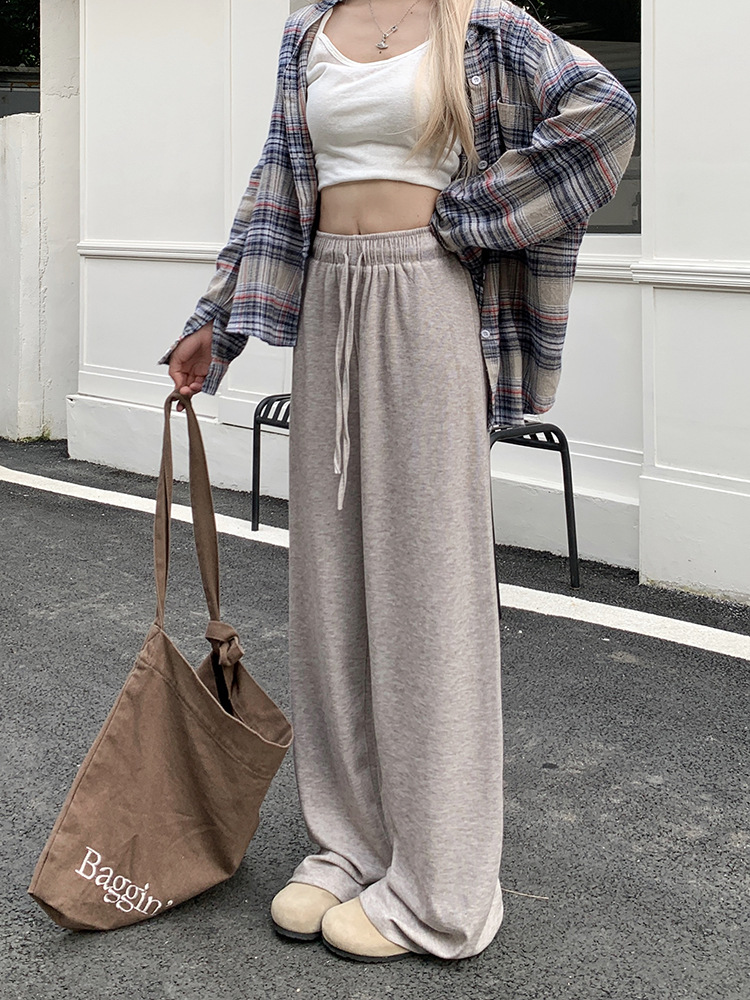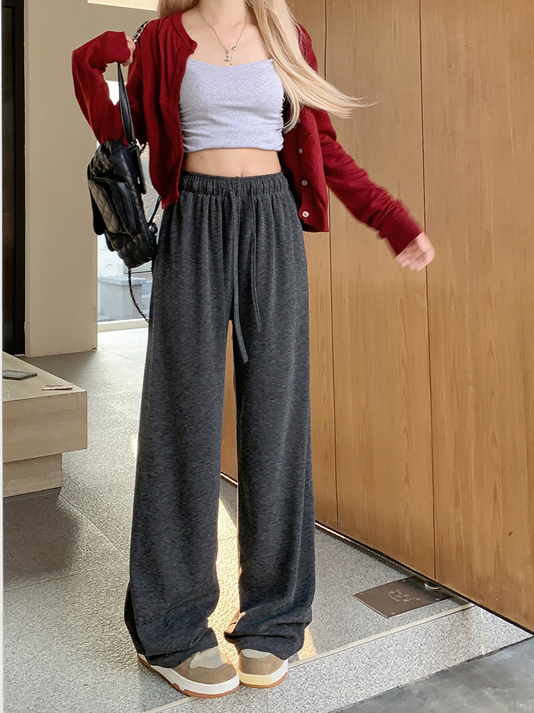 抽绳松紧高腰拖地休闲裤女秋季新款宽松显瘦百搭遛弯垂感长裤