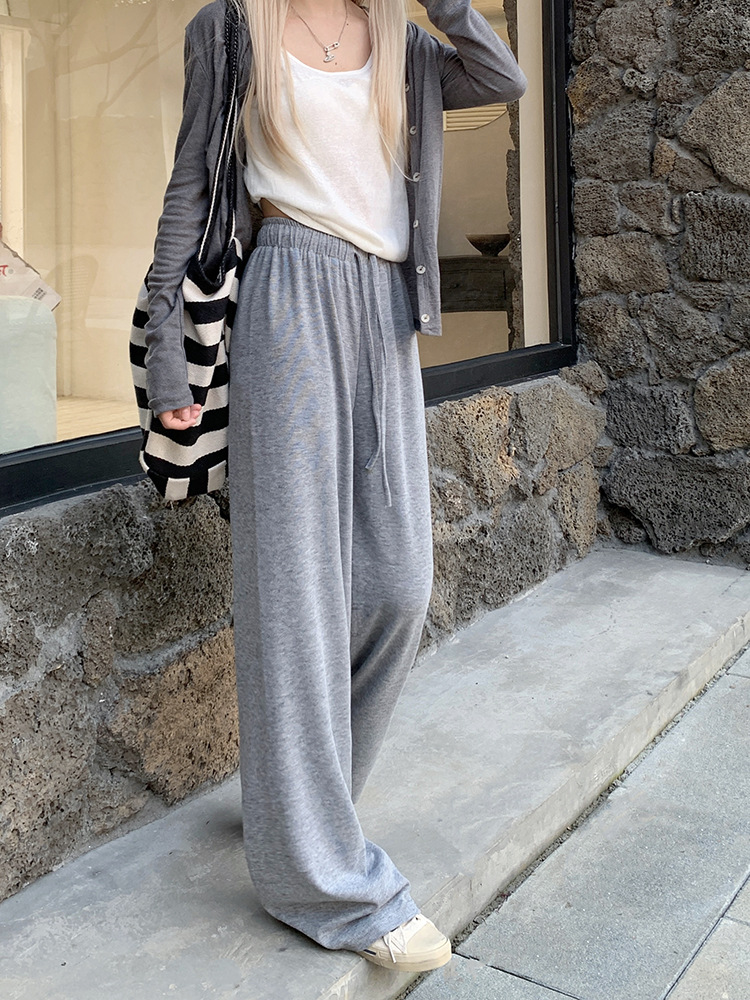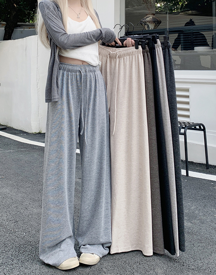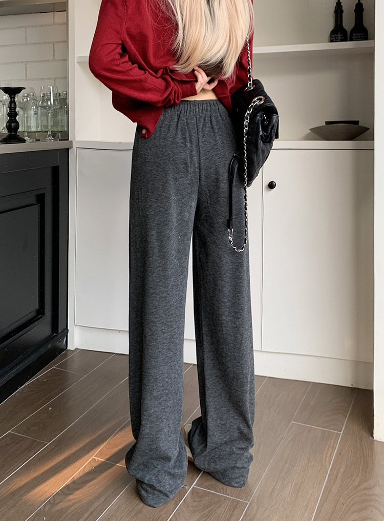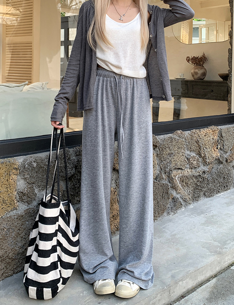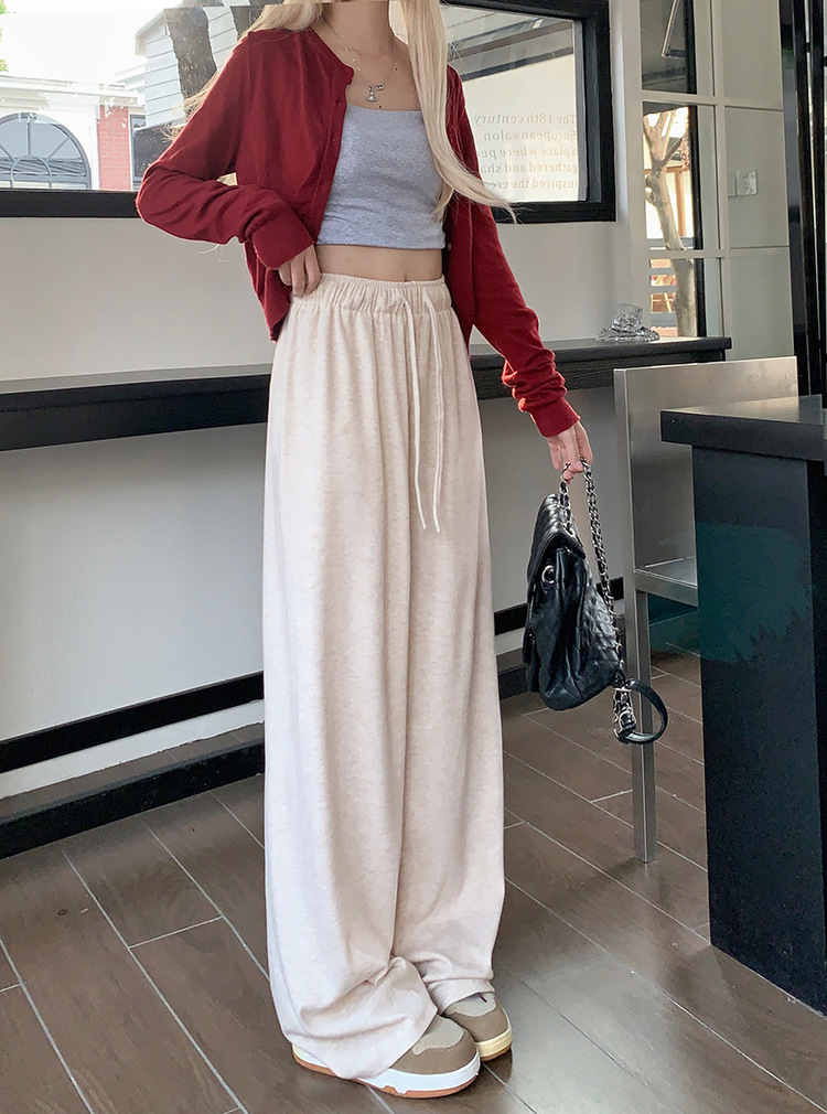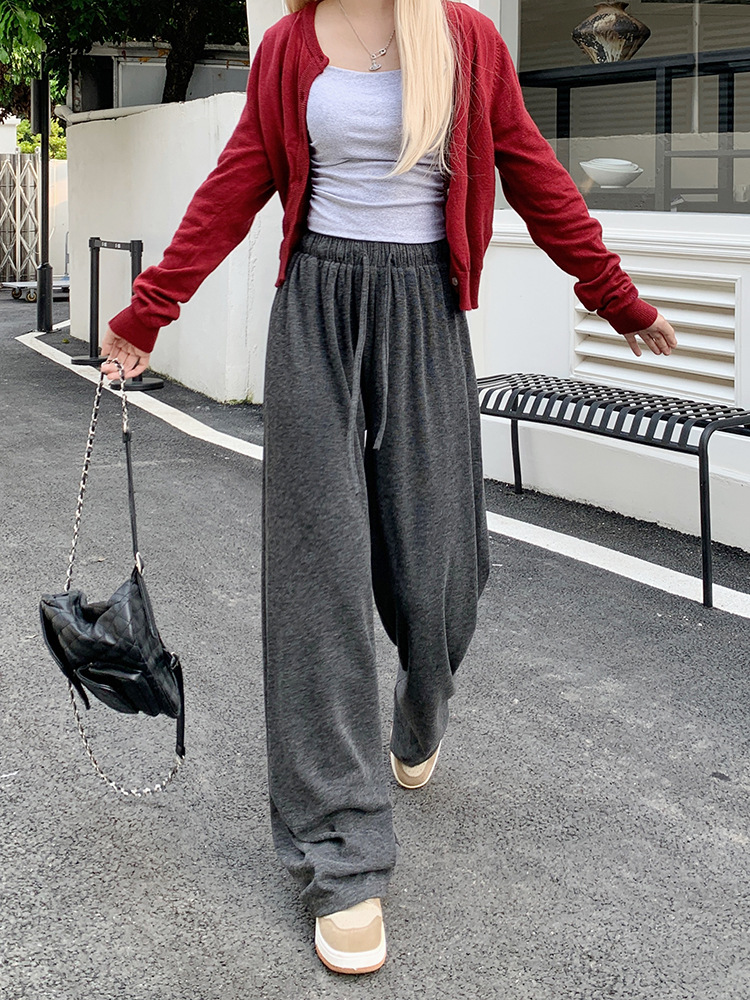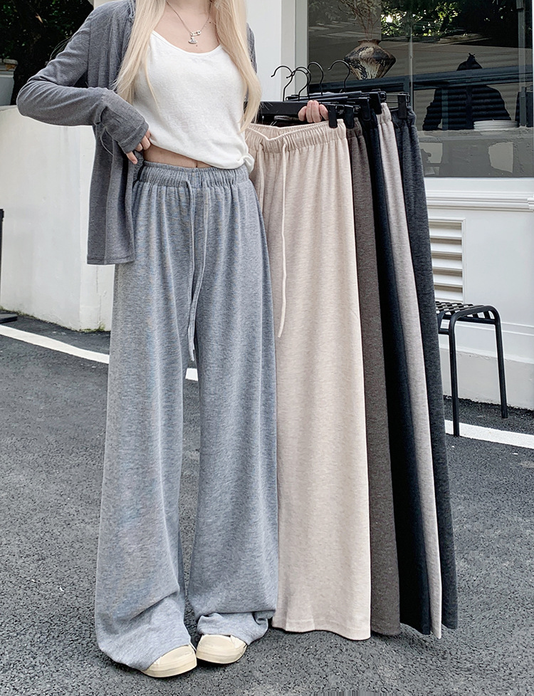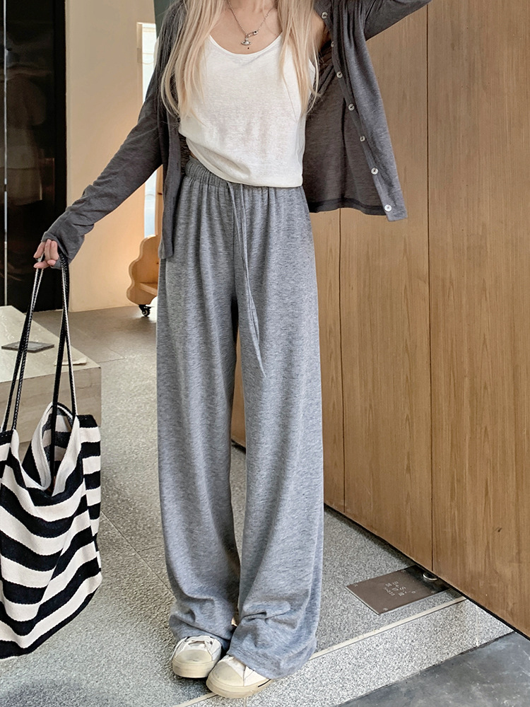 抽绳松紧高腰拖地休闲裤女秋季新款宽松显瘦百搭遛弯垂感长裤