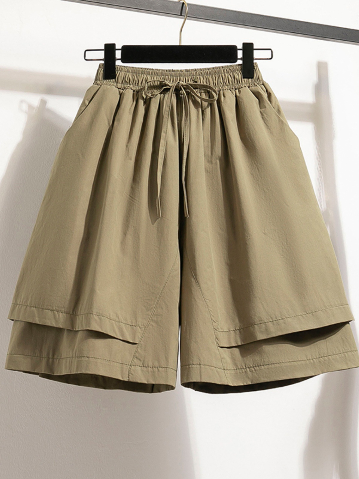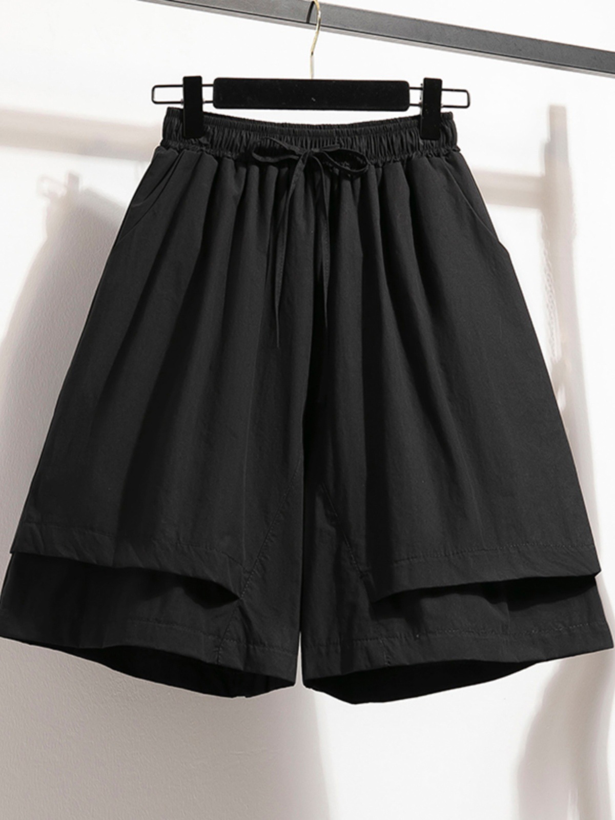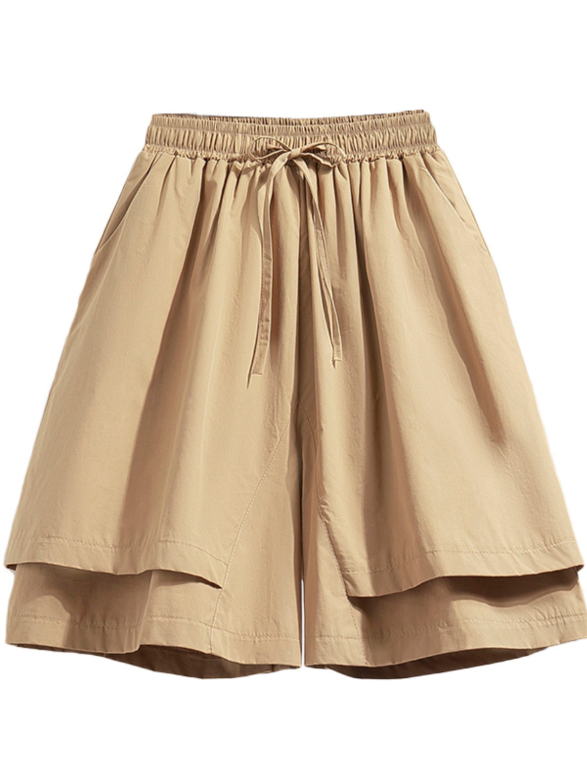 裤裙新款夏季休闲松紧腰系带显瘦遮肉假两件阔腿裤纯色五分短裤女