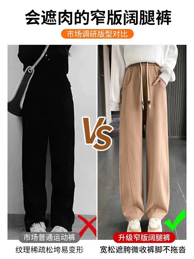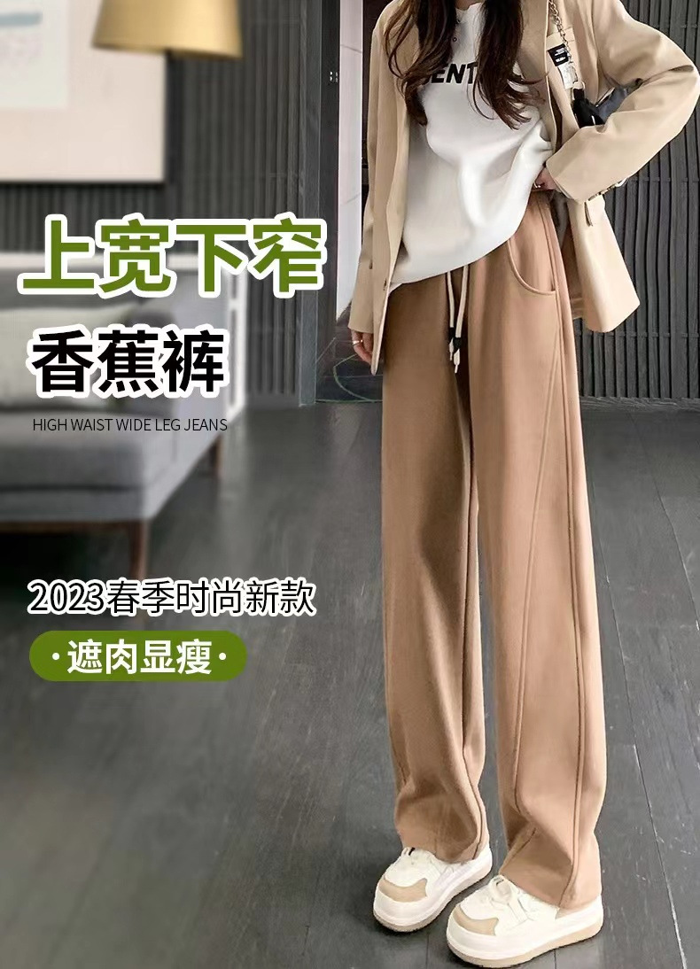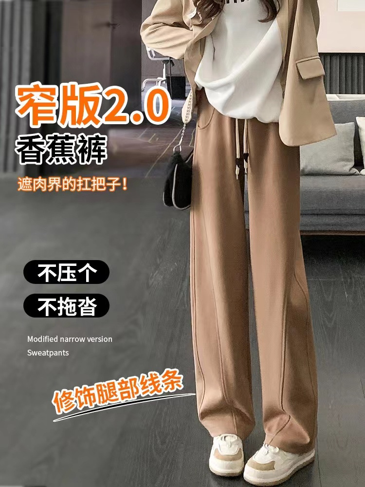 美式阔腿裤女春秋新款夏季薄款高腰垂感小个子白色休闲运动裤